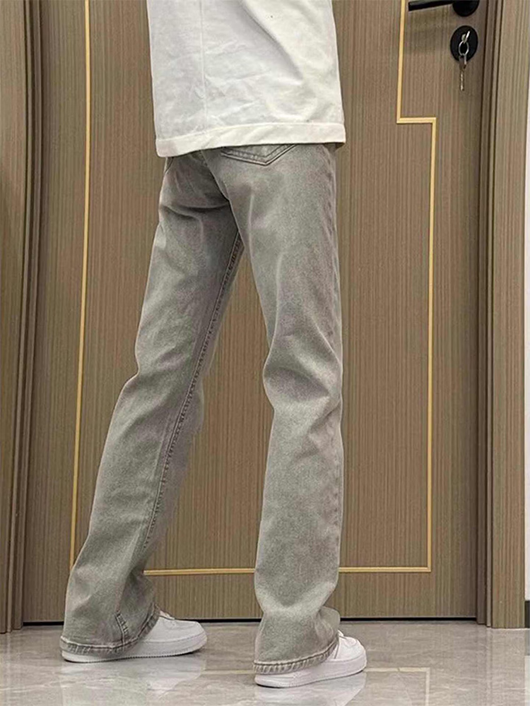 灿图烟灰色牛仔裤男秋冬季美式加绒潮流vibe裤子窄版显瘦直筒微喇长裤 烟灰色 常规 XL