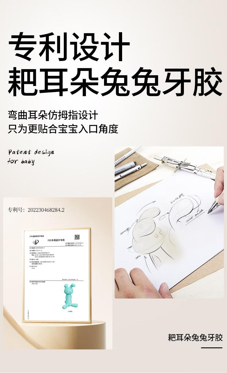 Beedoll Beidou ear rake rabbit teether baby molar stick baby chew gum oral period silicone toy anti-eating hand artifact strawberry powder (storage box + anti-drop chain)