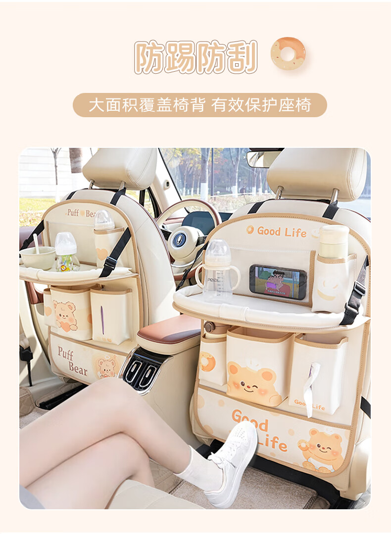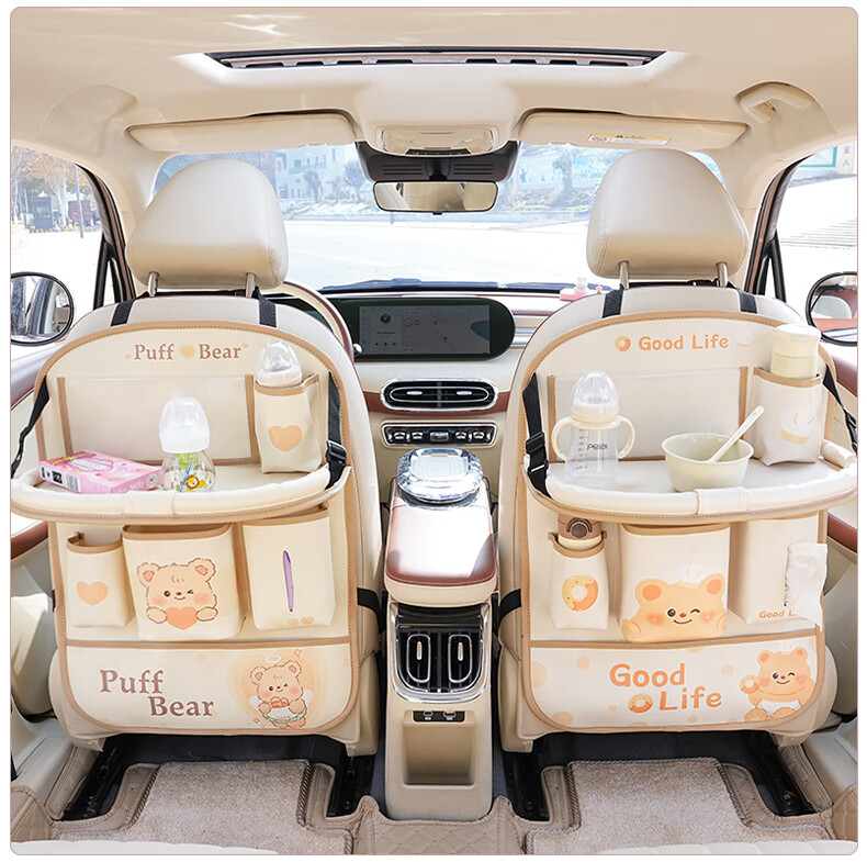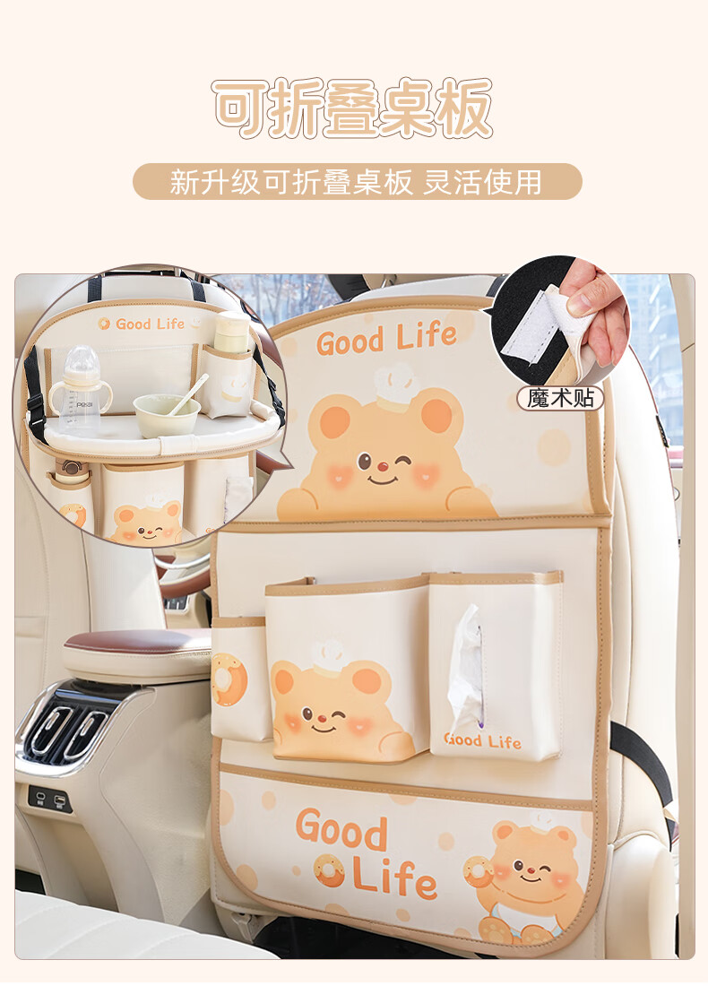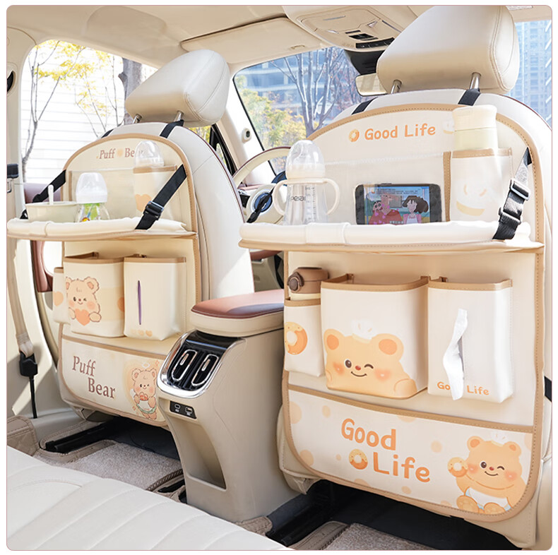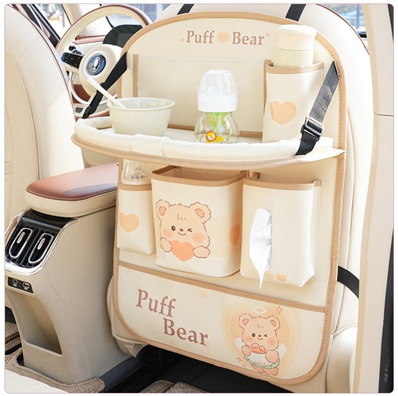 Zuimi German imported quality car seat back storage hanging bag car rear children's anti-kick pad folding small table board Z-Love Puff Bear folding-anti-kick-waterproof