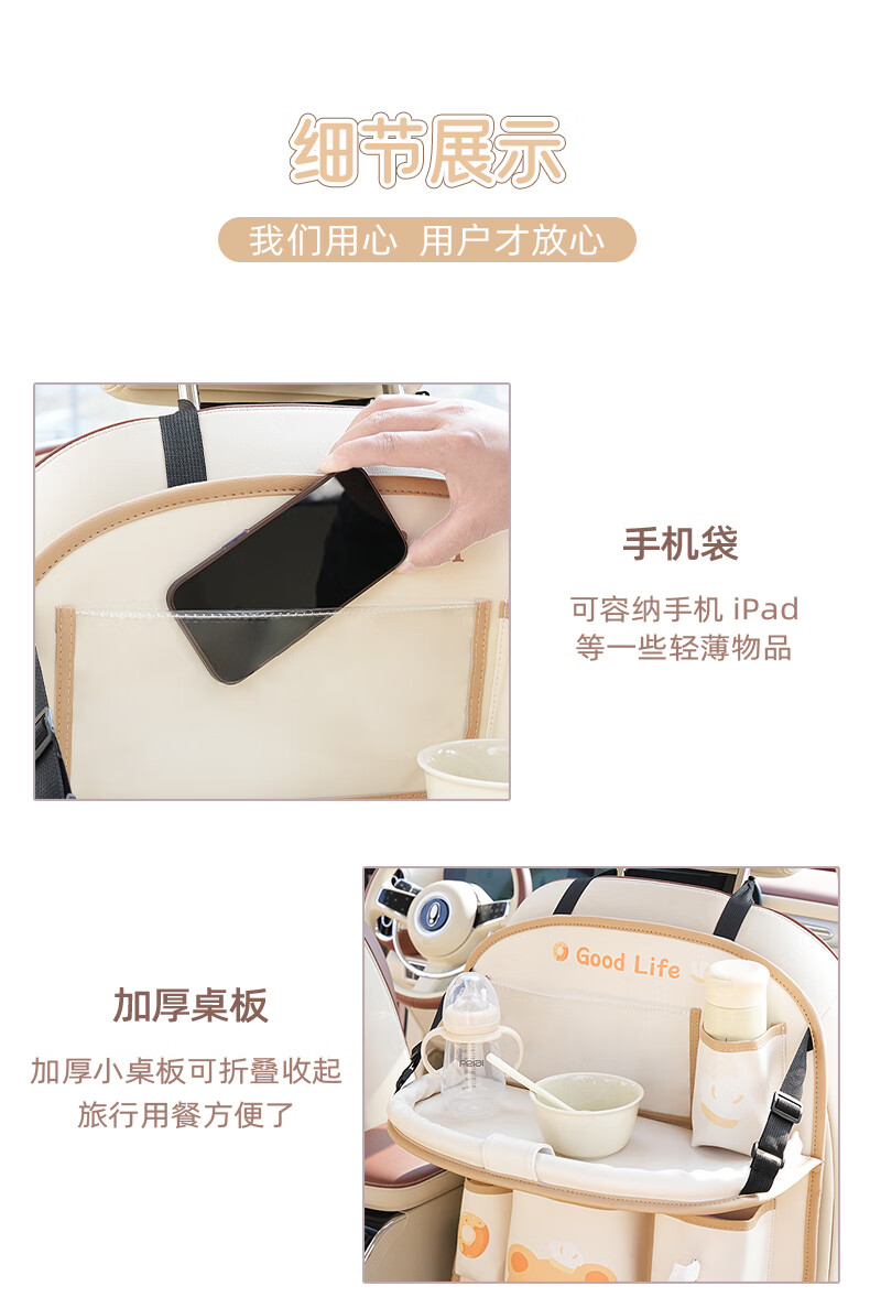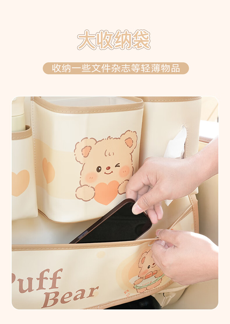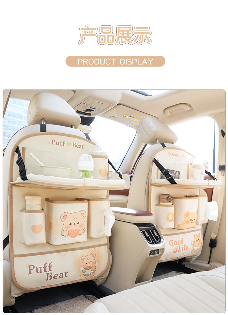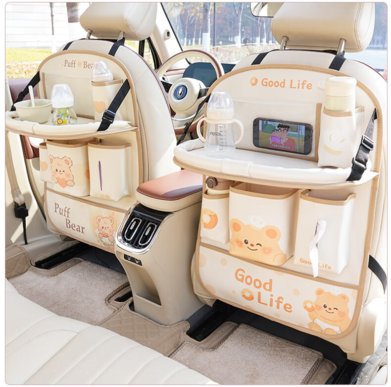 Zuimi German imported quality car seat back storage hanging bag car rear children's anti-kick pad folding small table board Z-Love Puff Bear folding-anti-kick-waterproof