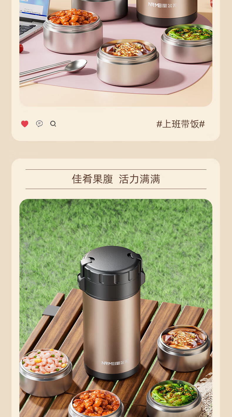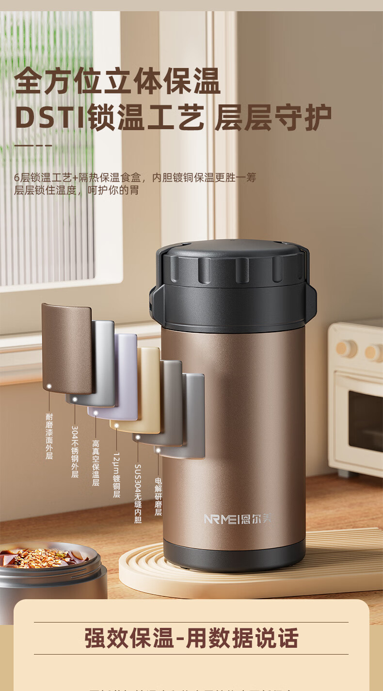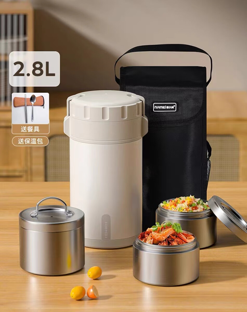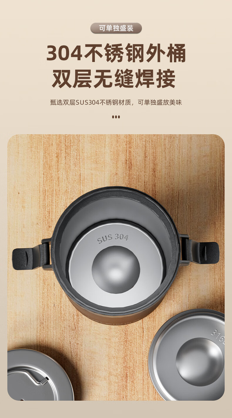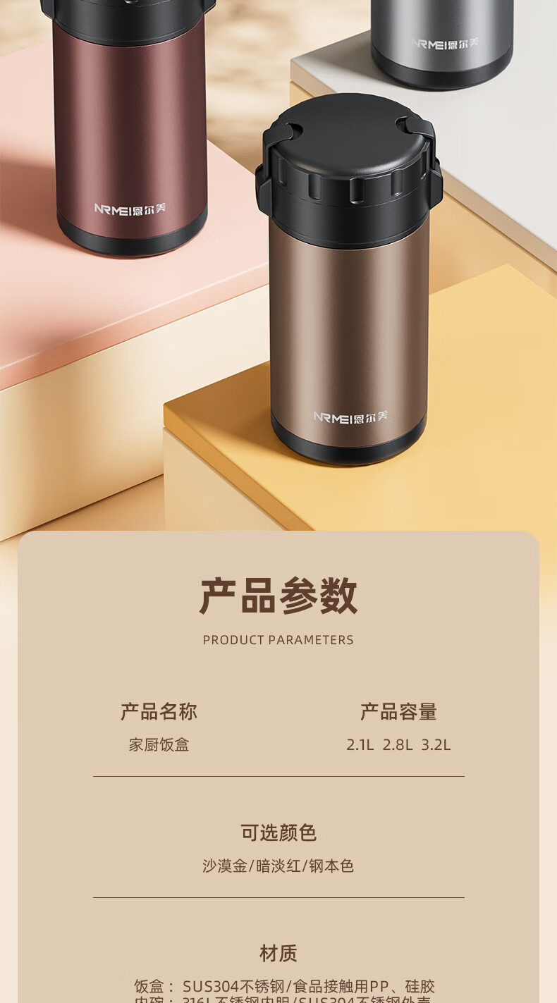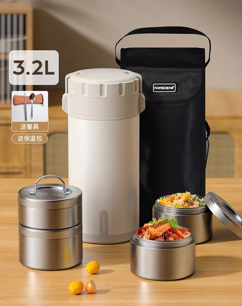 NRMEi 24H long-lasting thermal insulation lunch box bucket 316 stainless steel large capacity multi-layer portable pot for students and office workers 3200ml 1 bucket 4 boxes + 316L material + free tableware, dark red