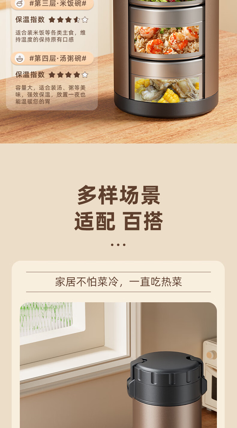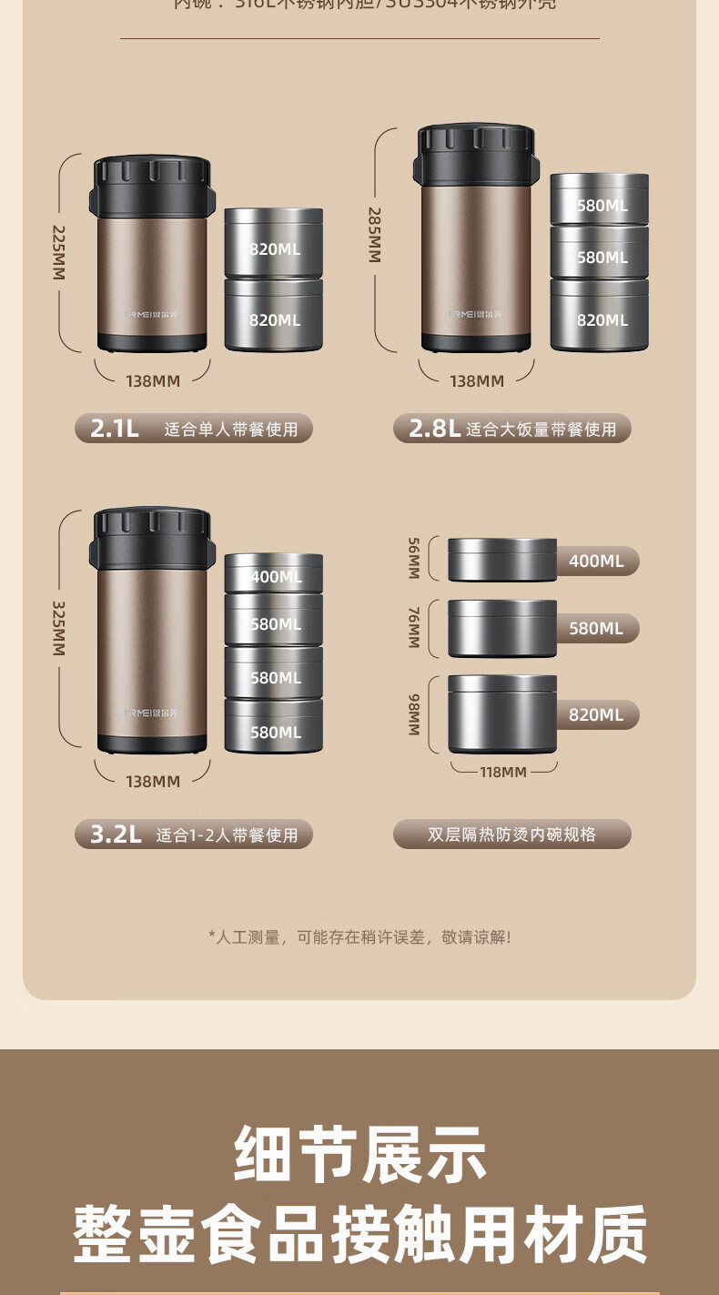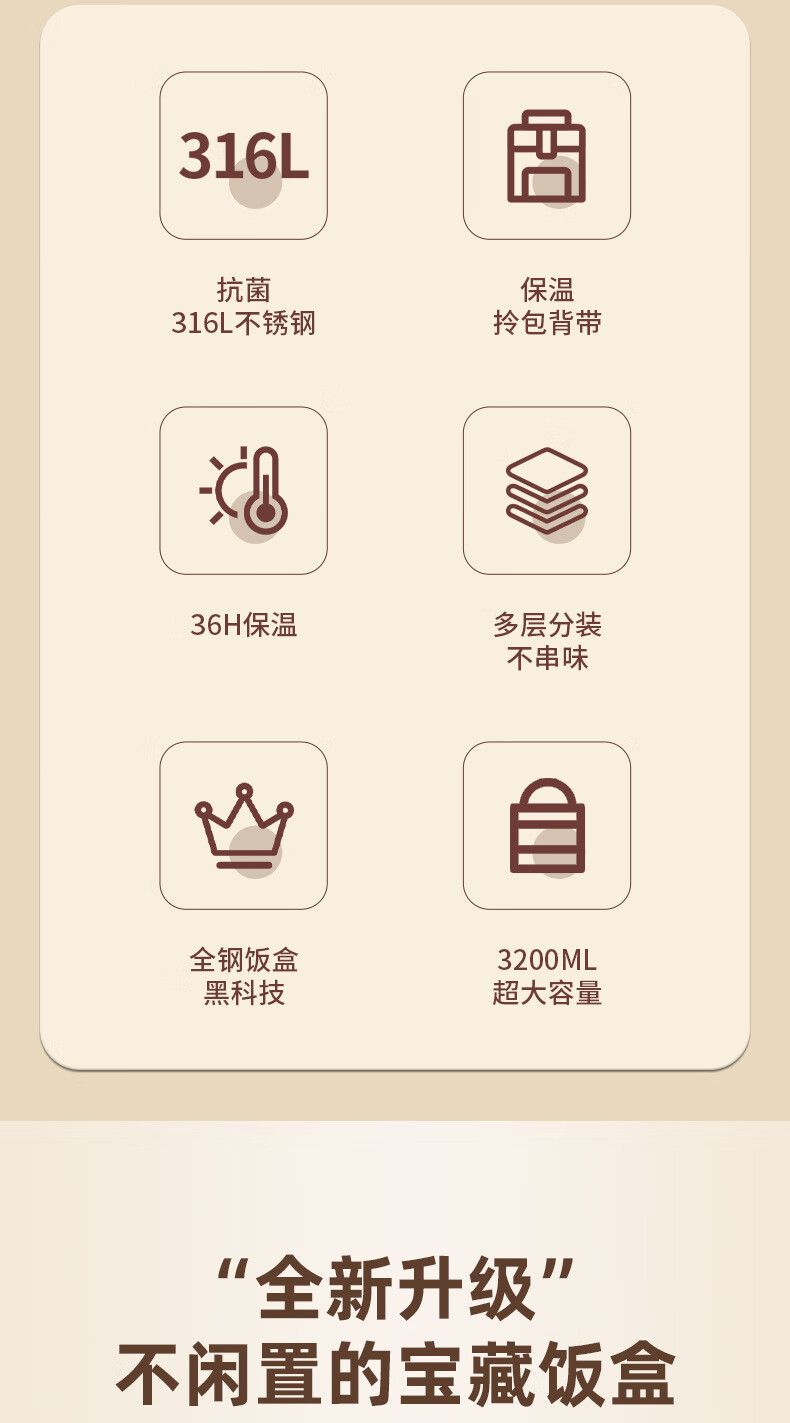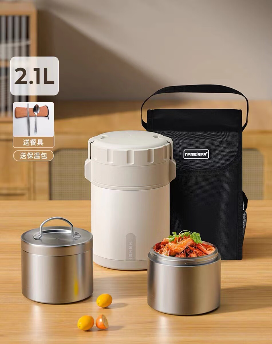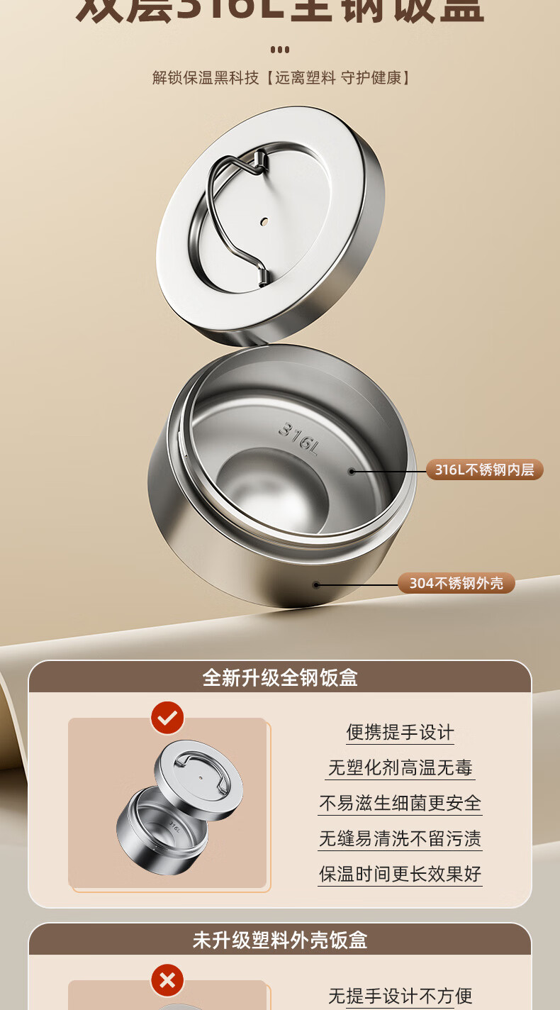 NRMEi 24H long-lasting thermal insulation lunch box bucket 316 stainless steel large capacity multi-layer portable pot for students and office workers 3200ml 1 bucket 4 boxes + 316L material + free tableware, dark red