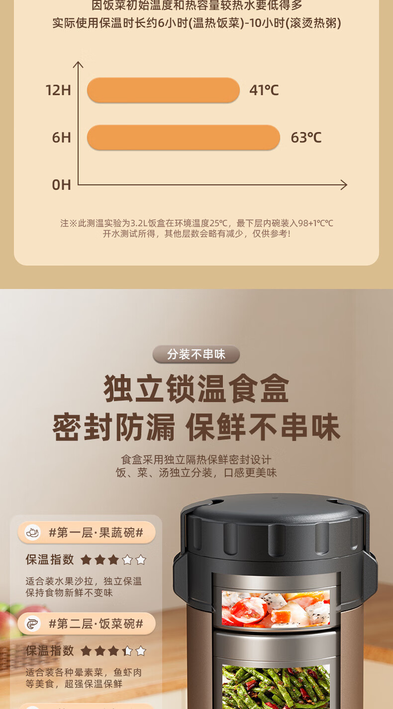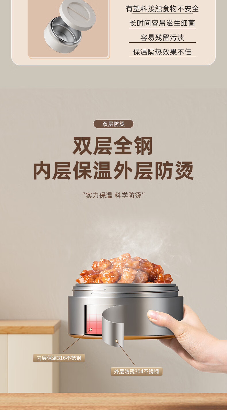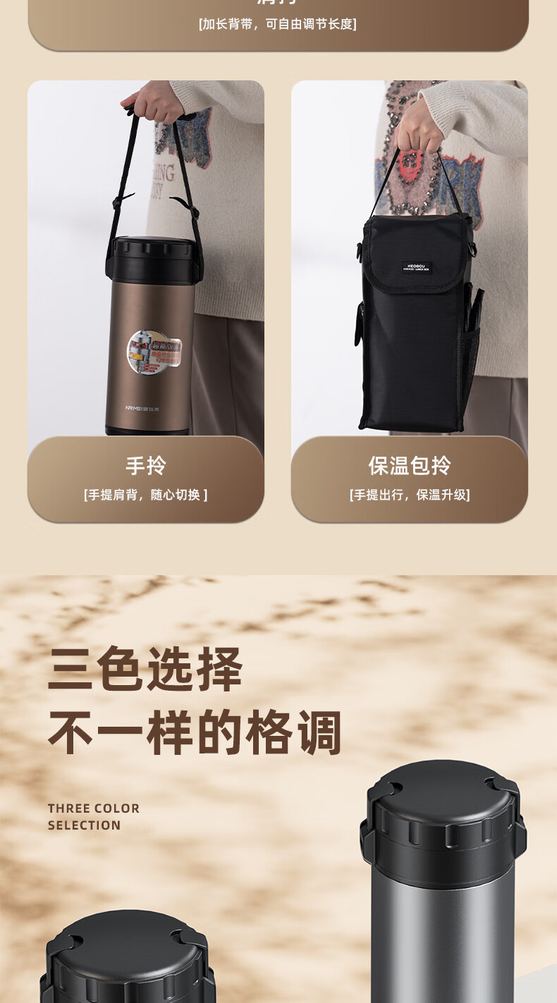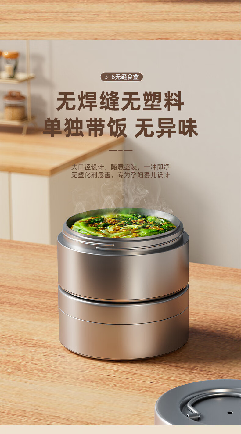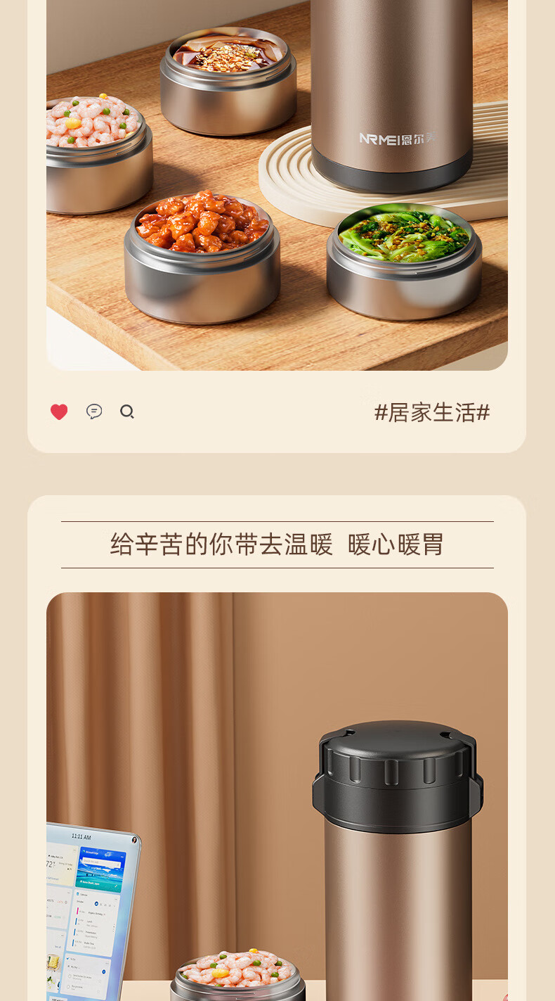 NRMEi 24H long-lasting thermal insulation lunch box bucket 316 stainless steel large capacity multi-layer portable pot for students and office workers 3200ml 1 bucket 4 boxes + 316L material + free tableware, dark red