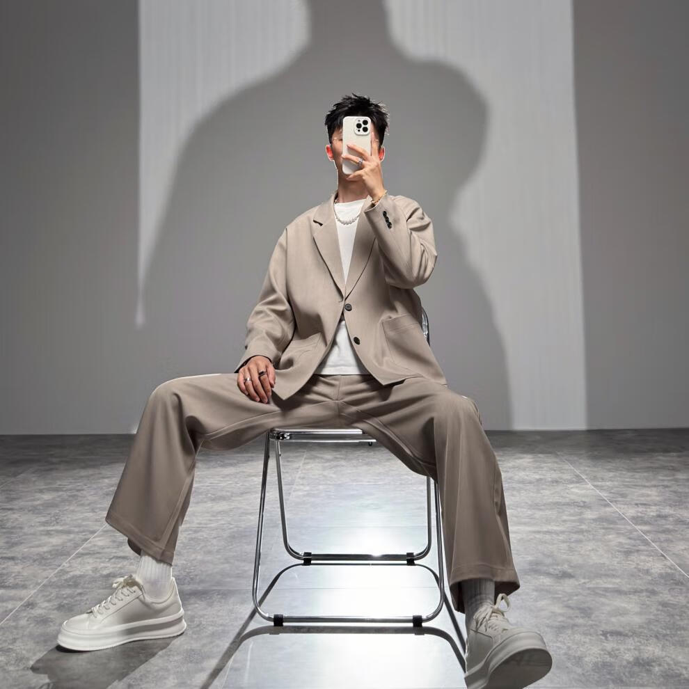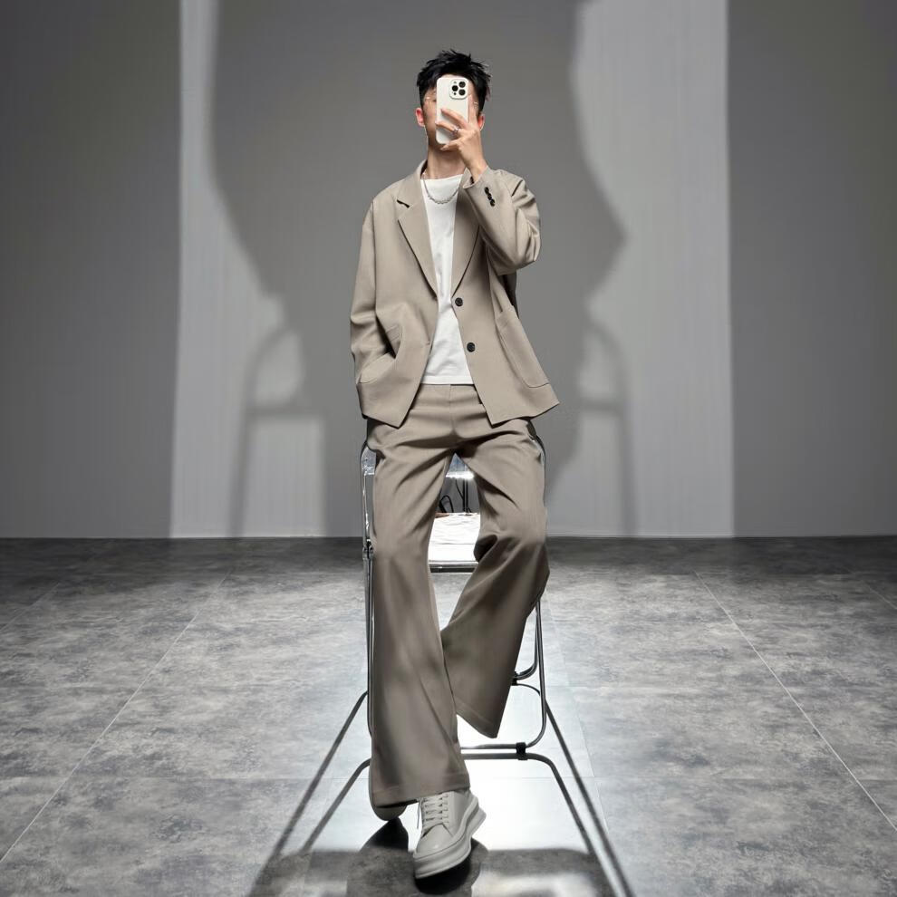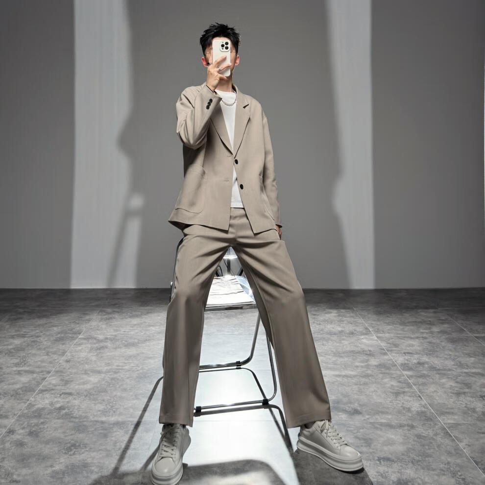 ROMON Ryder's matching suit suit men's oversized casual suit two-piece loose, mature, handsome, champagne color L