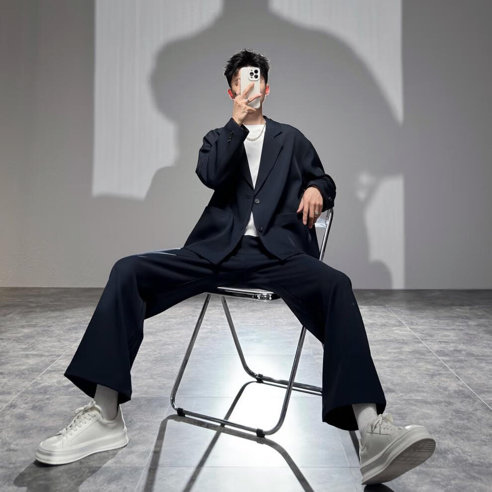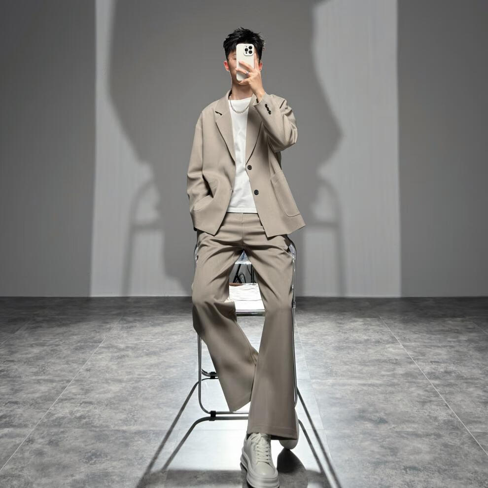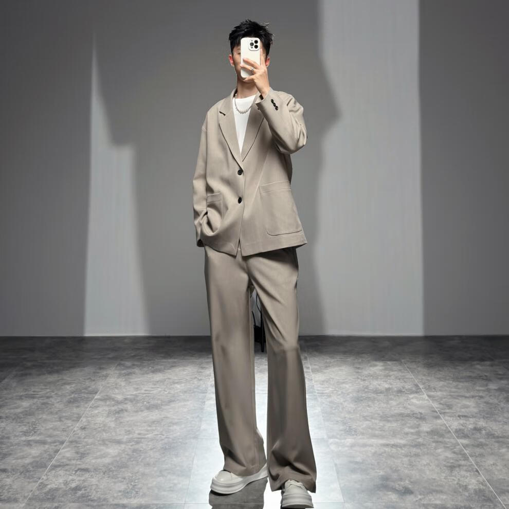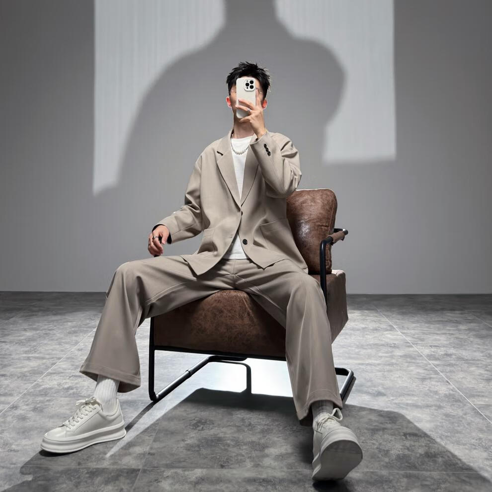 ROMON Ryder's matching suit suit men's oversized casual suit two-piece loose, mature, handsome, champagne color L