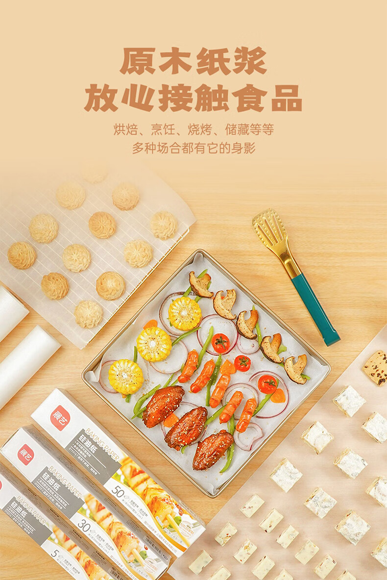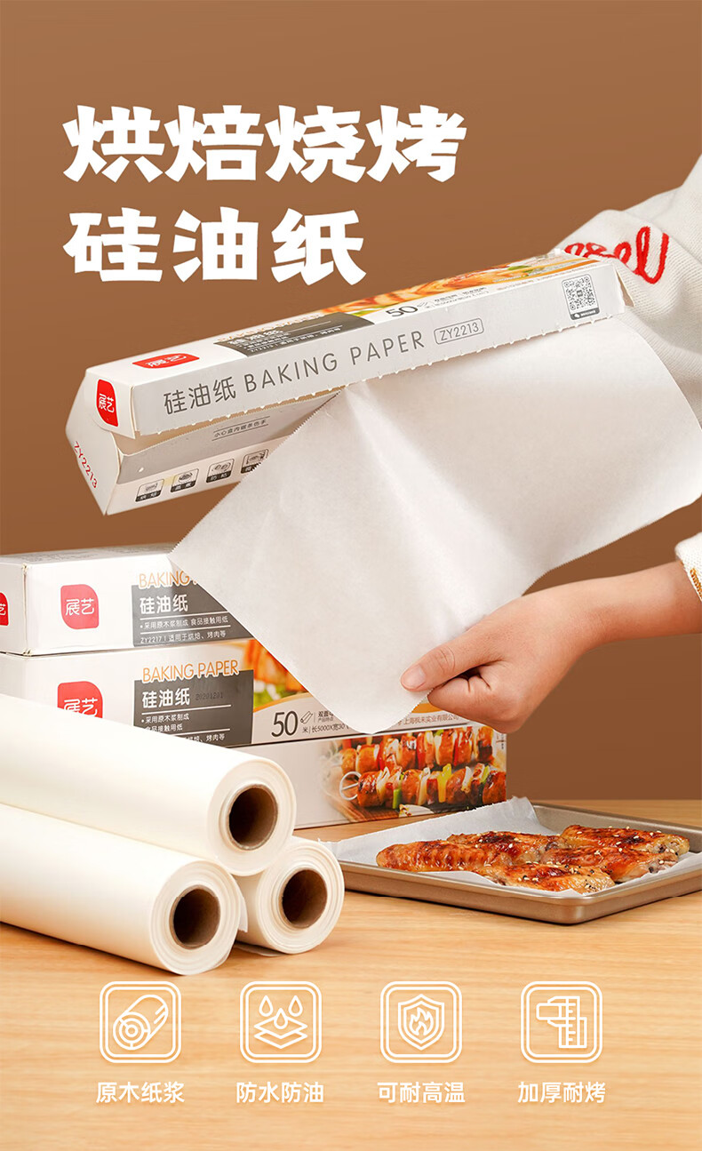 Zhanyi baking silicone paper 30cm50m barbecue baking oil-absorbing paper tin foil air fryer household baking tools silicone paper 65m