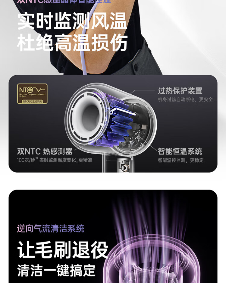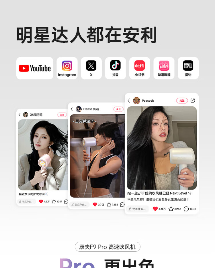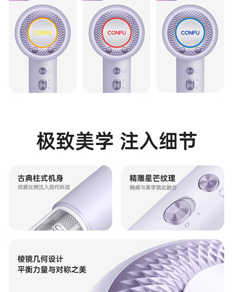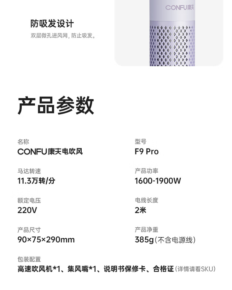 CONFU hair dryer, high-speed household high-wind, low-noise, quick-drying plasma hair care hair dryer, sterilization and mite removal, birthday gift for girlfriend, F9 Pro gift box, Hao Platinum丨 sterilization and mite removal + 5 billion plasma + bracket