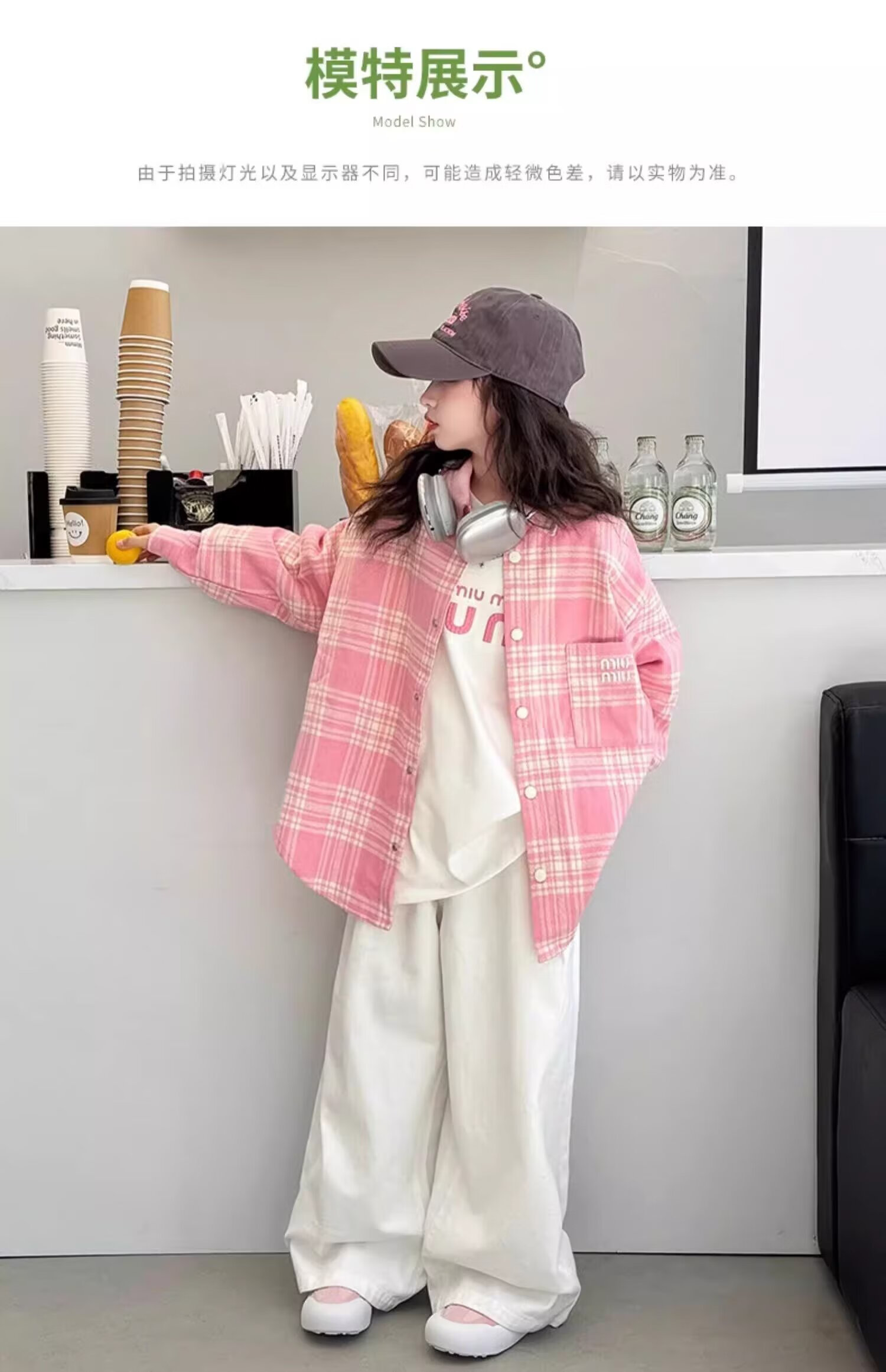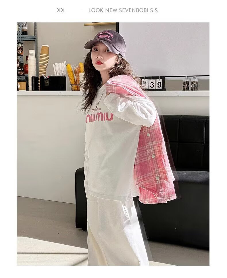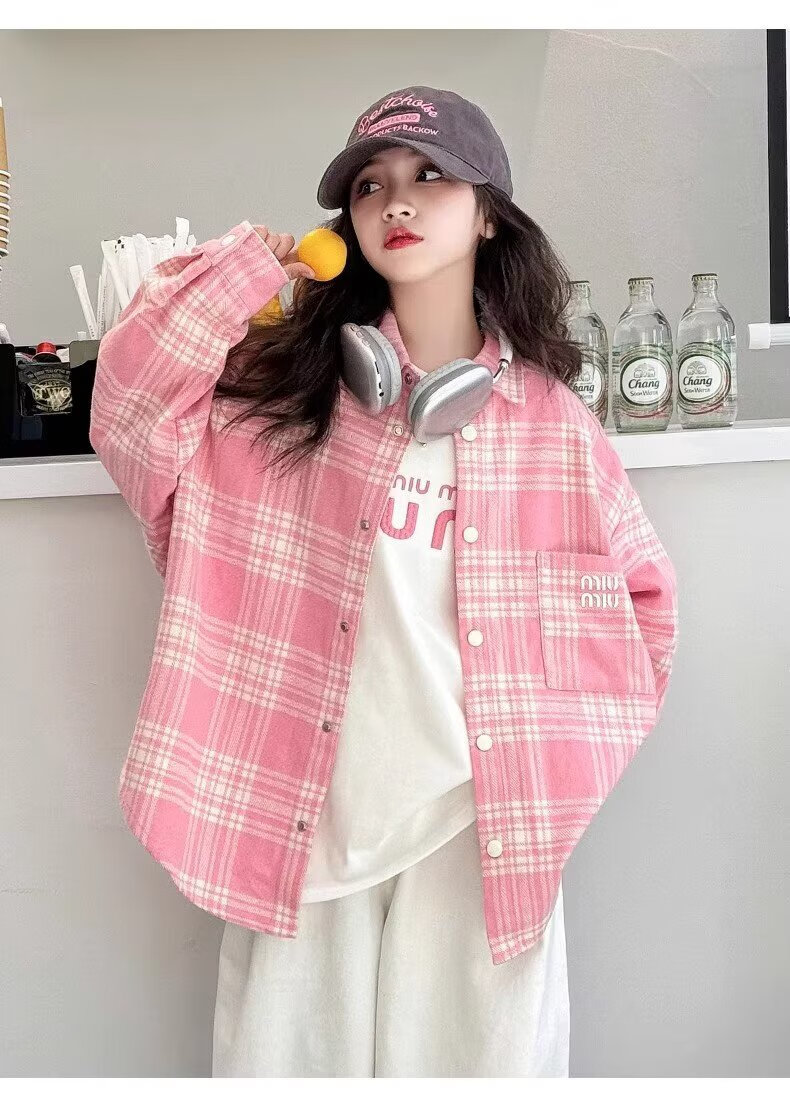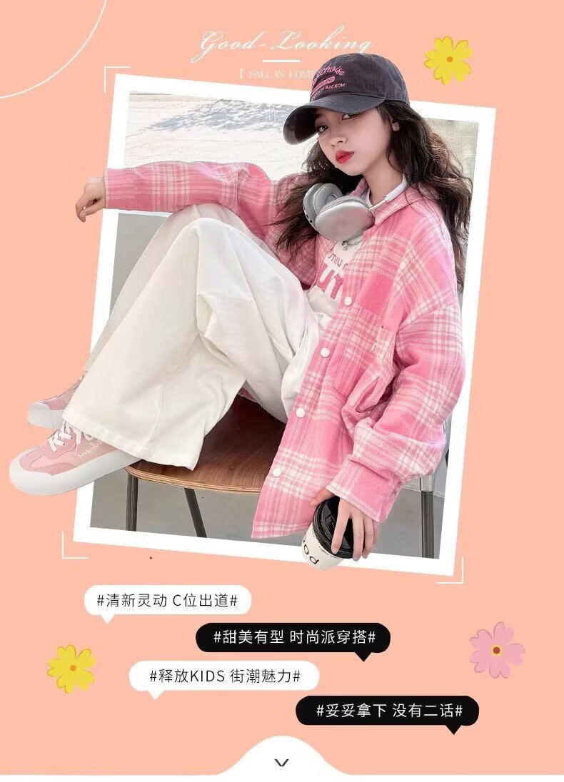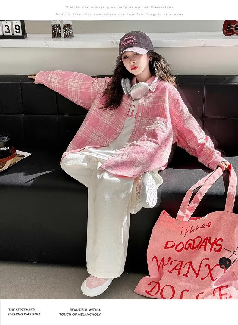 Girls long-sleeved shirt 2025 spring and autumn new style children's Korean style fashionable plaid top for middle and large children spring fashion JHP-6633 pink 140
