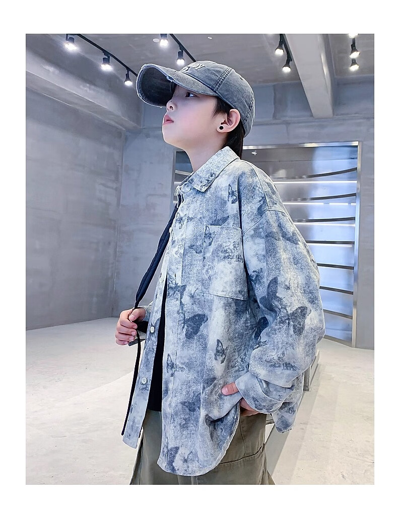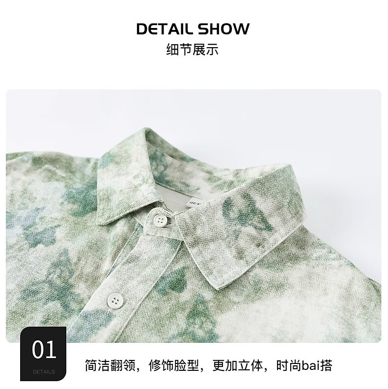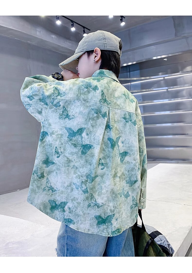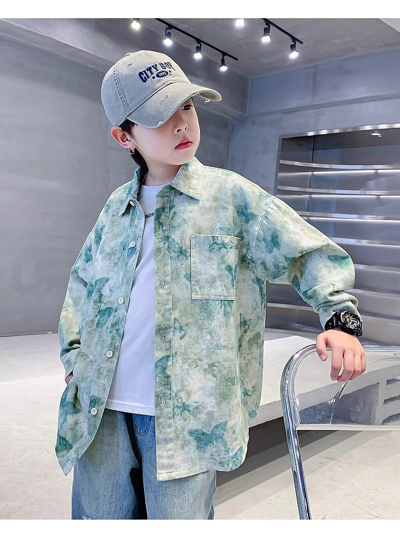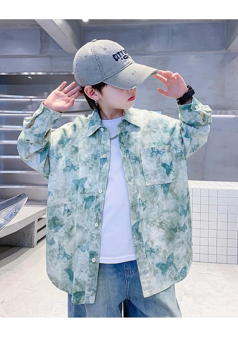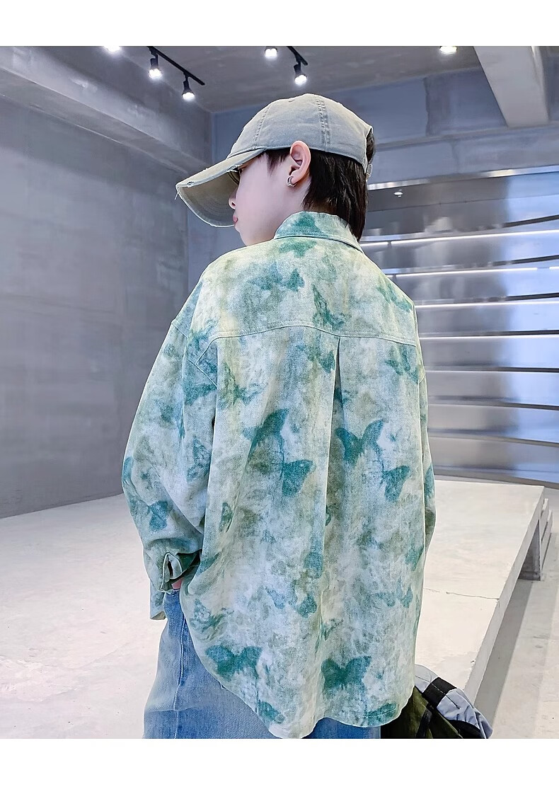 Boys autumn fashion trendy tie-dye shirt thin jacket 2025 new style medium and large children spring and autumn handsome loose top JHP-5508 Green 170