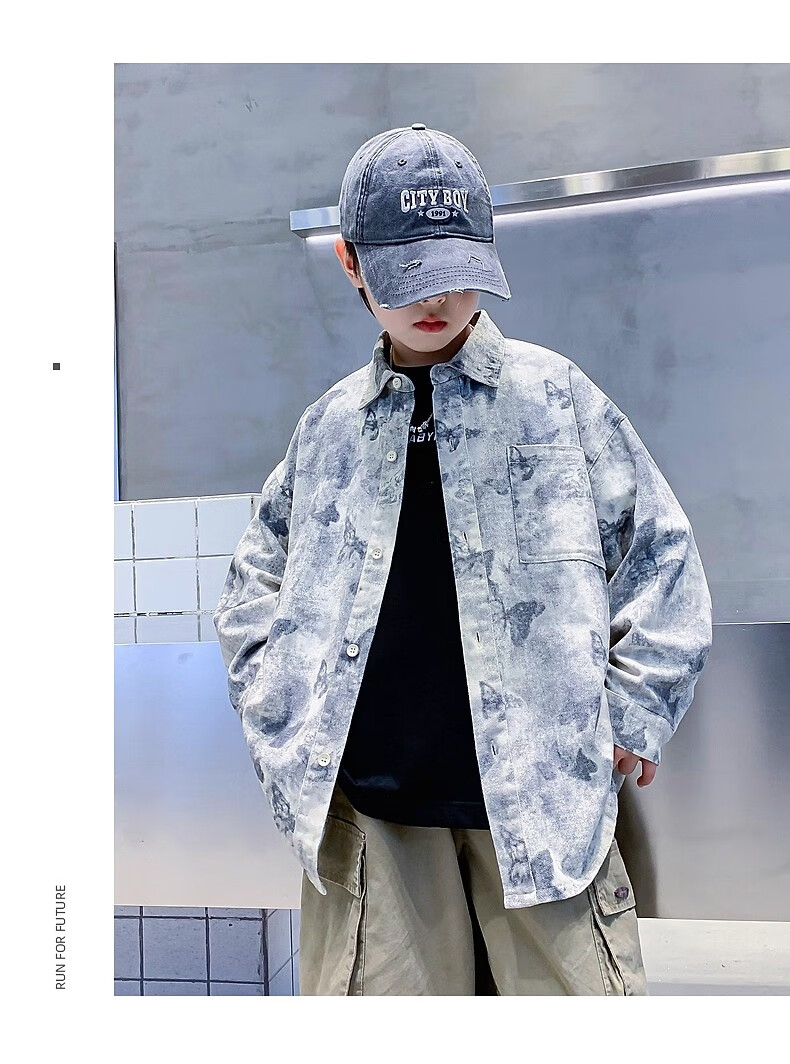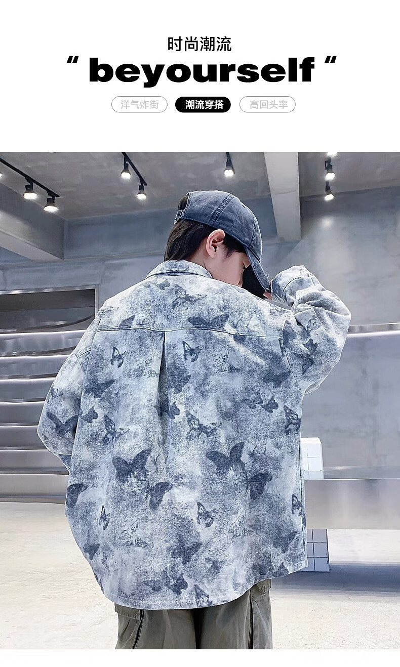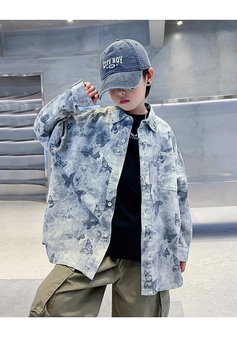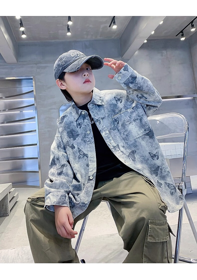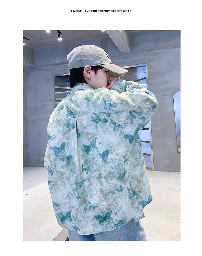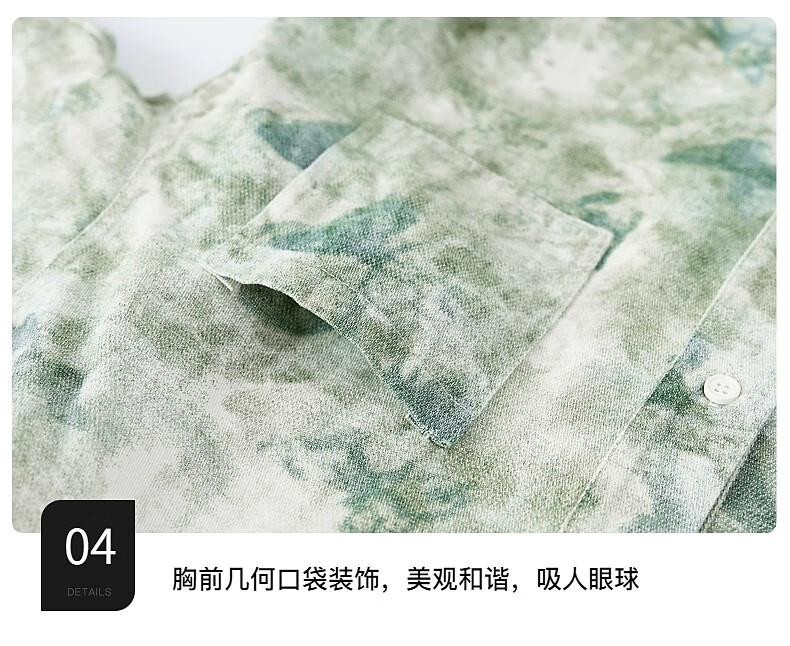 Boys autumn fashion trendy tie-dye shirt thin jacket 2025 new style medium and large children spring and autumn handsome loose top JHP-5508 Green 170