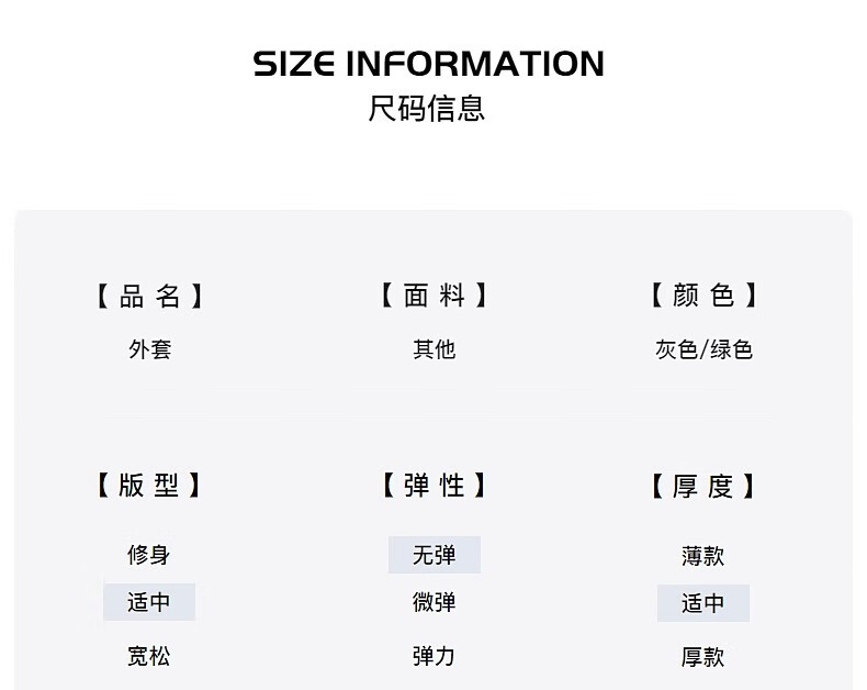 China (cm) 165 / 88-90 170 / 96-98 175 / 108-110 180 / 118-122 185 / 126-130
