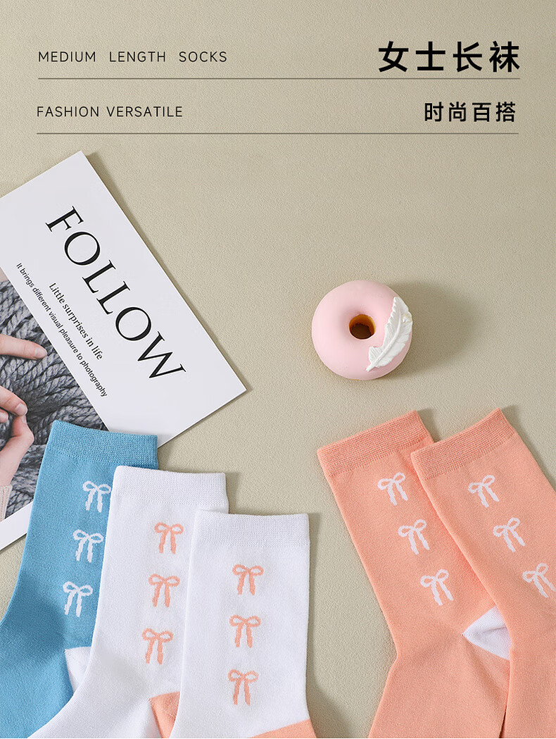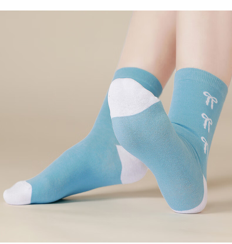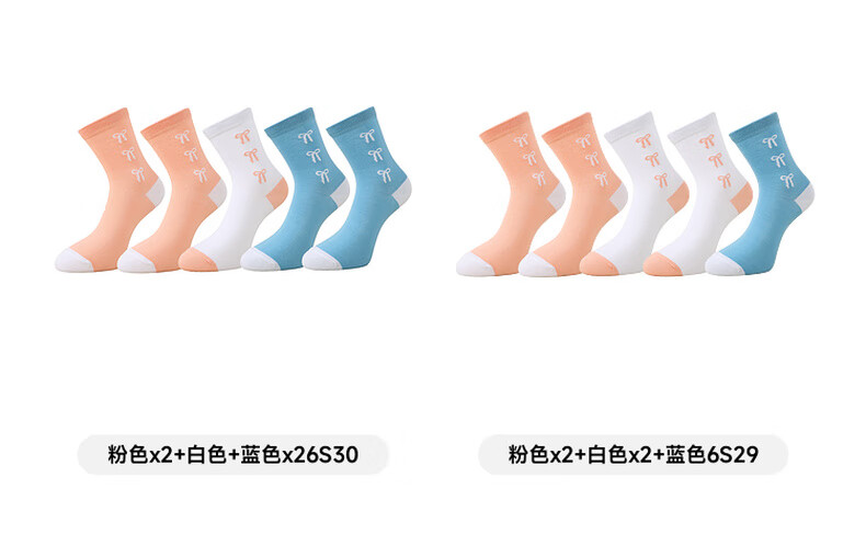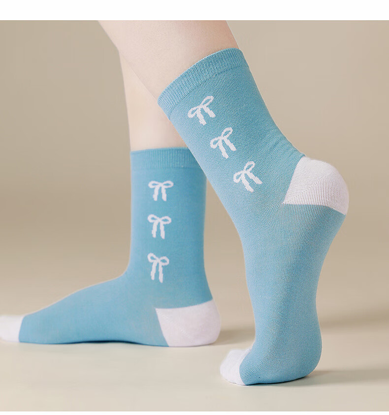 Jeanswest Women's Color Block Woven Stockings 2025 Autumn New Arrival Sweet Women's Stockings 5 Pairs Pack L6 Pink*2+White*2+Blue 6S29 One Size