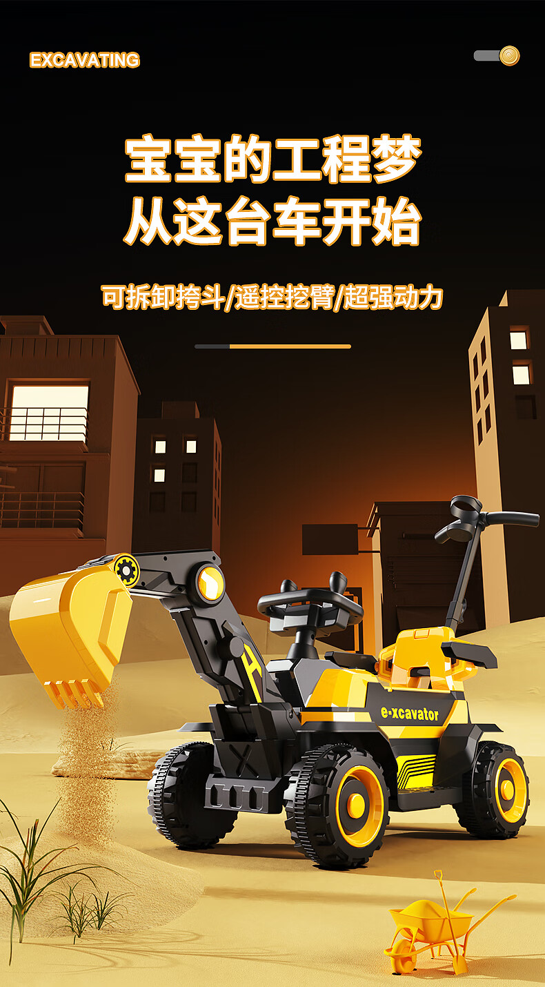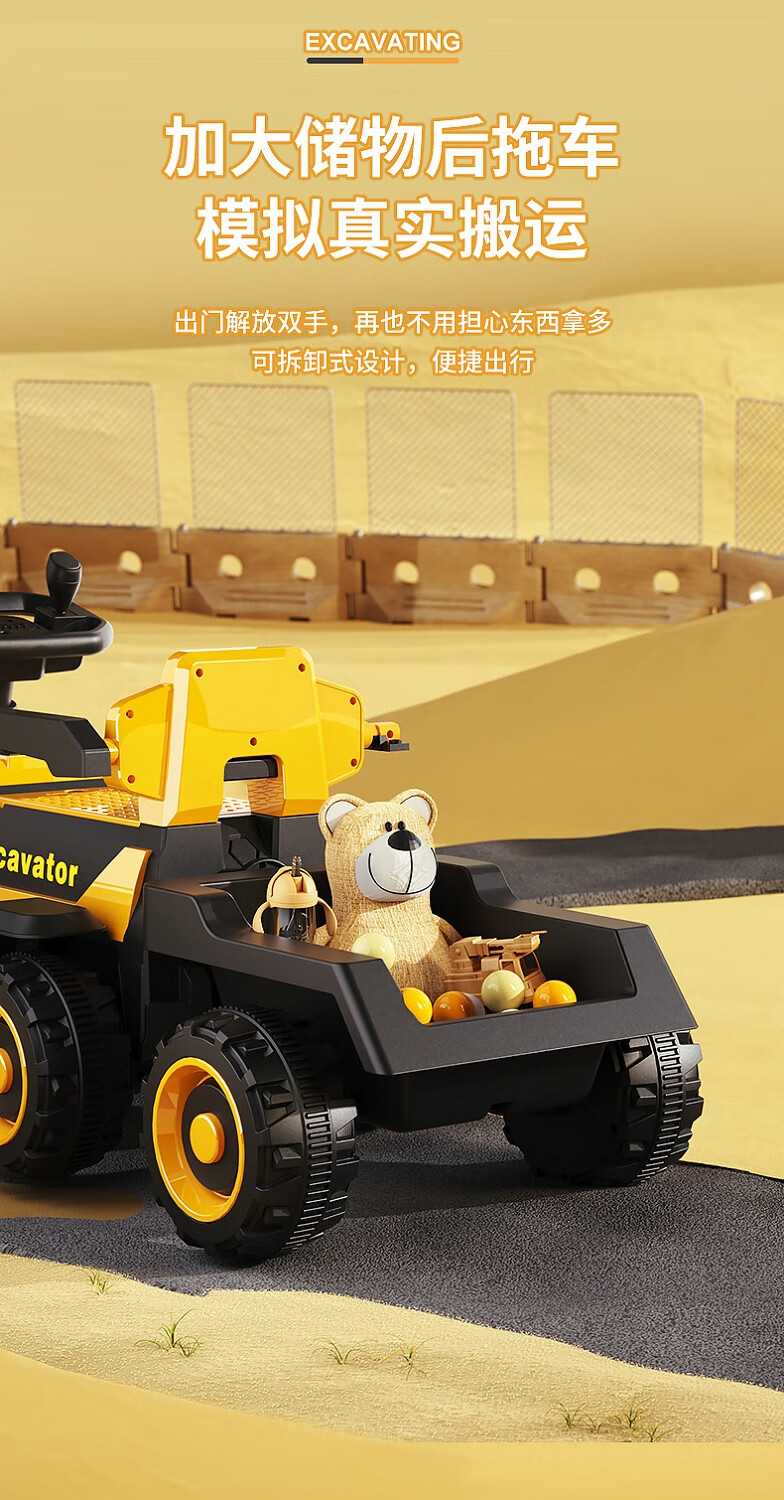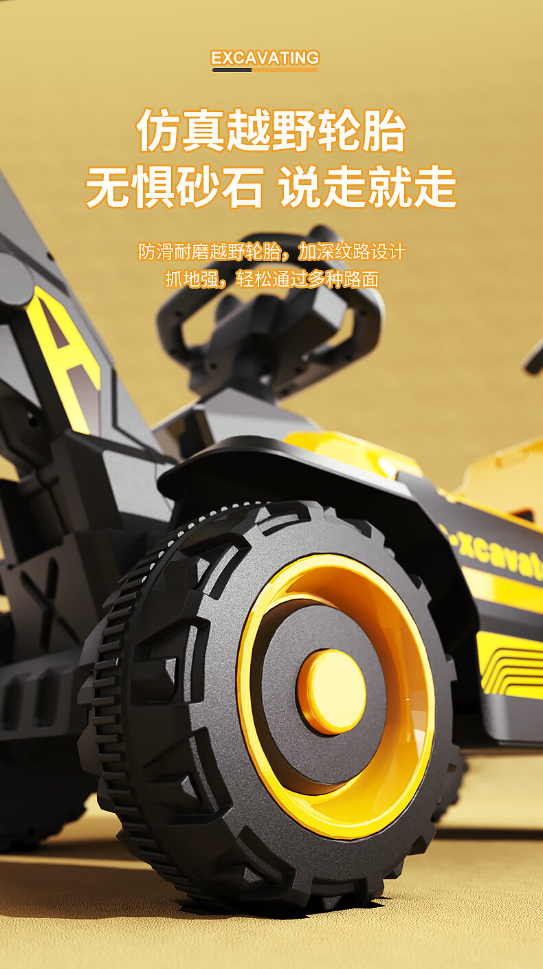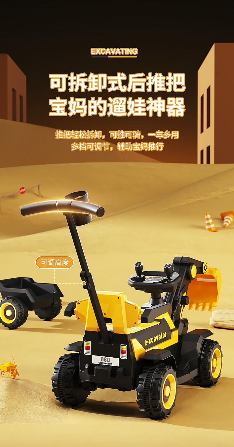 361 Children's electric excavator can be used to excavate soil for boys aged 1-3-8 years old, engineering vehicle, baby remote control, extra large toy car, dual-drive remote control, large battery, side bucket, electric arm, push handle, baby walking tool, birthday gift