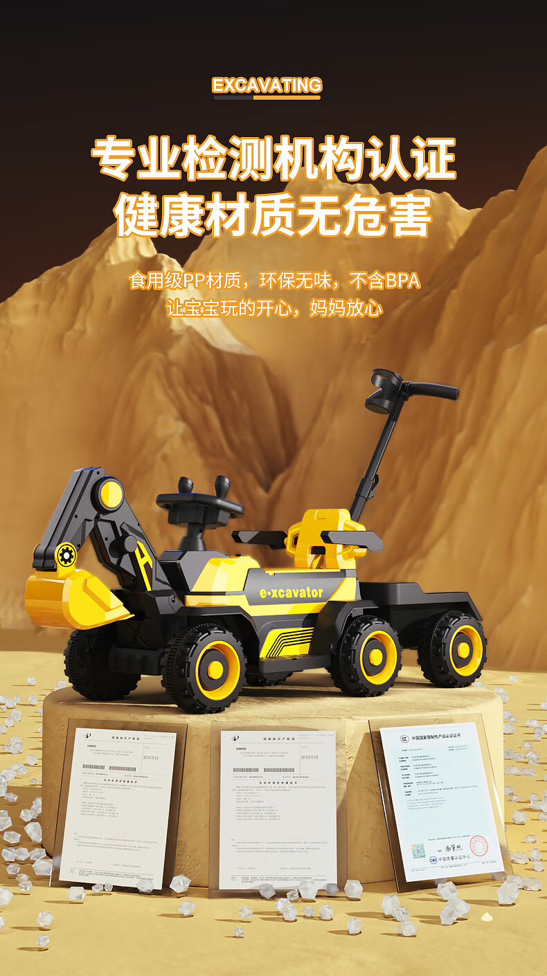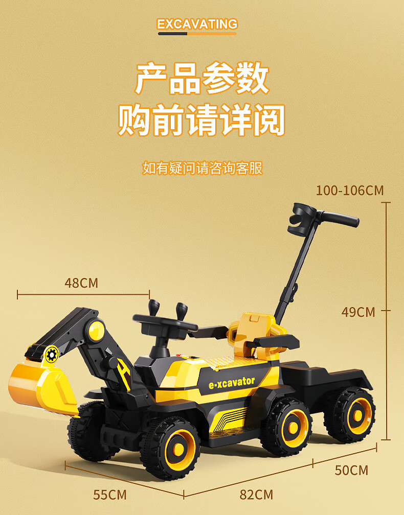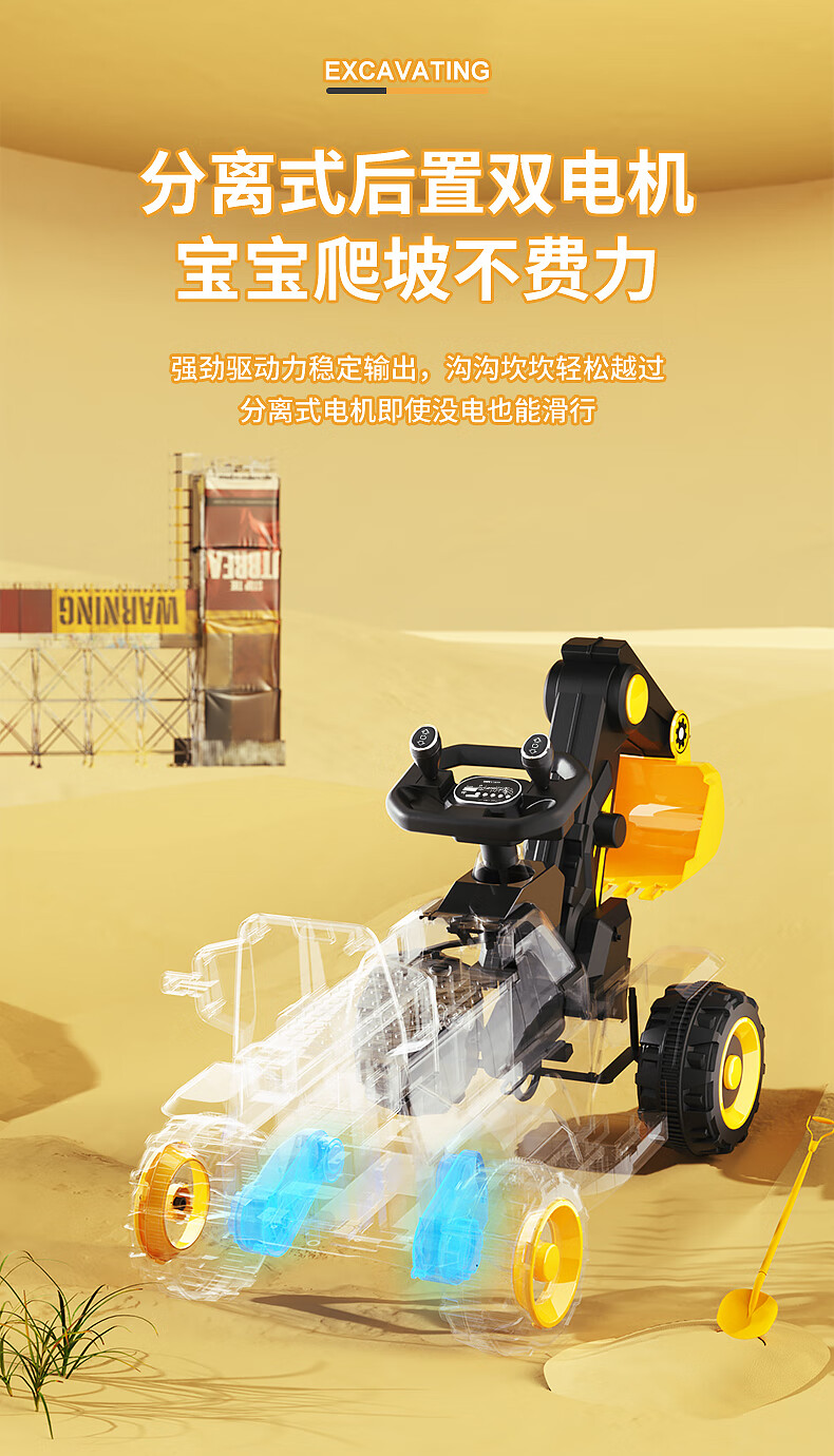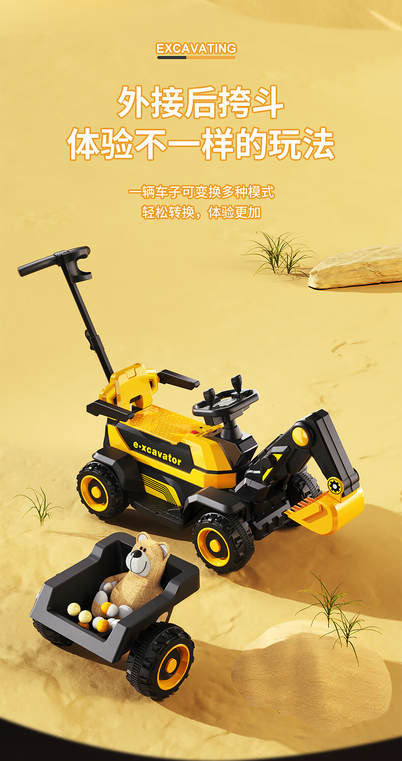 361 Children's electric excavator can be used to excavate soil for boys aged 1-3-8 years old, engineering vehicle, baby remote control, extra large toy car, dual-drive remote control, large battery, side bucket, electric arm, push handle, baby walking tool, birthday gift