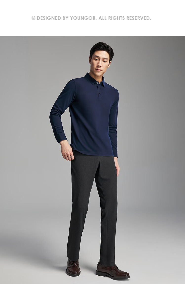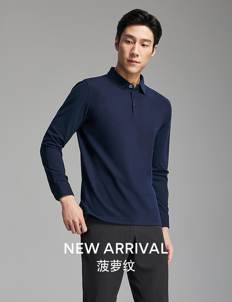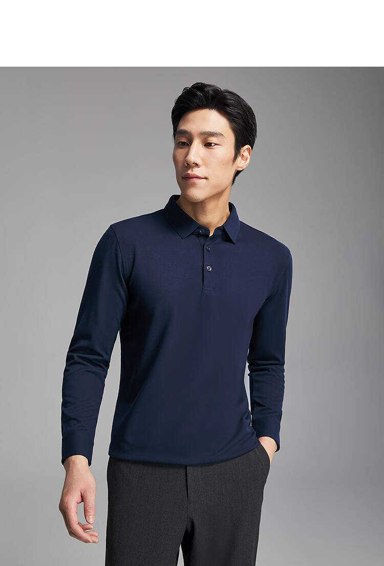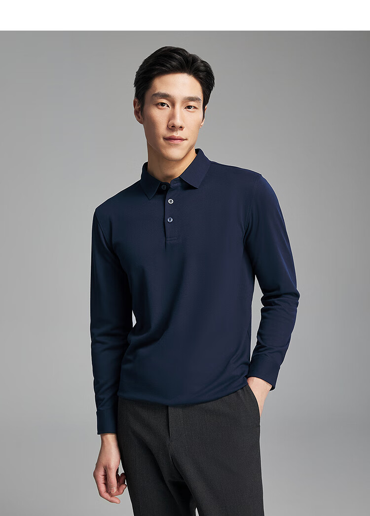 Youngor long-sleeved POLO shirt men's wool blended fabric men's POLO shirt soft and comfortable 2025 new product Navy VLYM519960FCA L (recommended 135-150Jin Jin equals 0.5 kg)