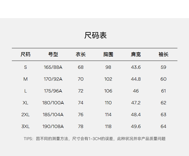 China (cm) 165 / 88-90 170 / 96-98 175 / 108-110 180 / 118-122 185 / 126-130