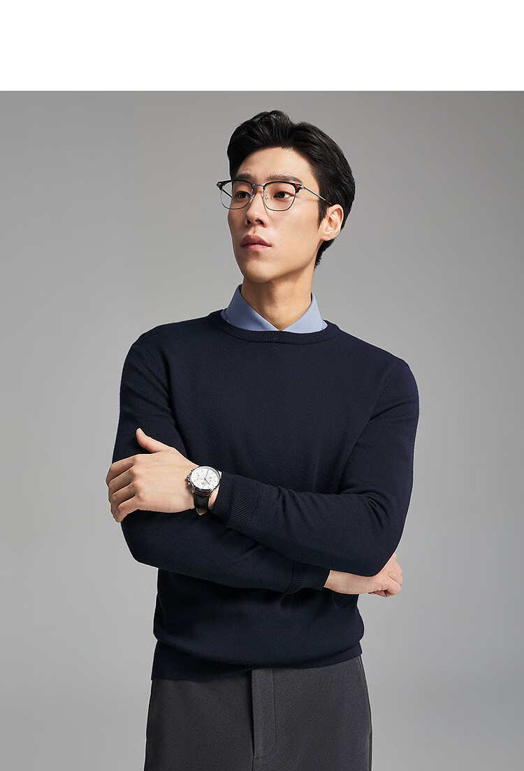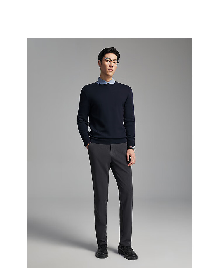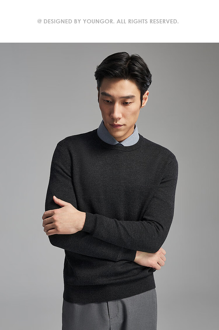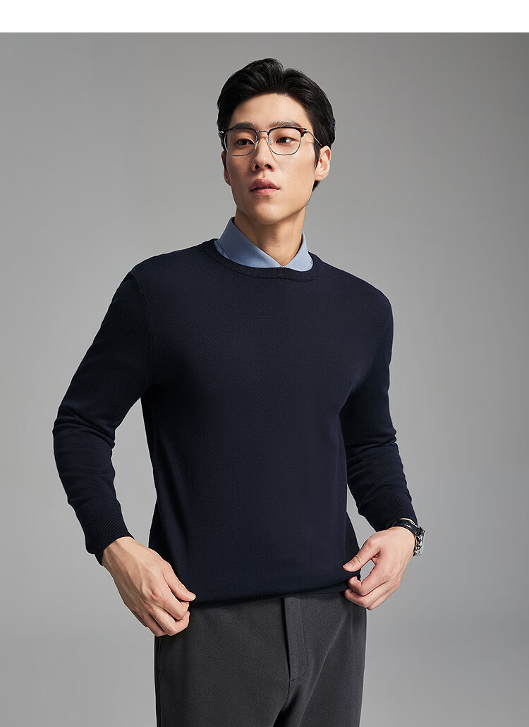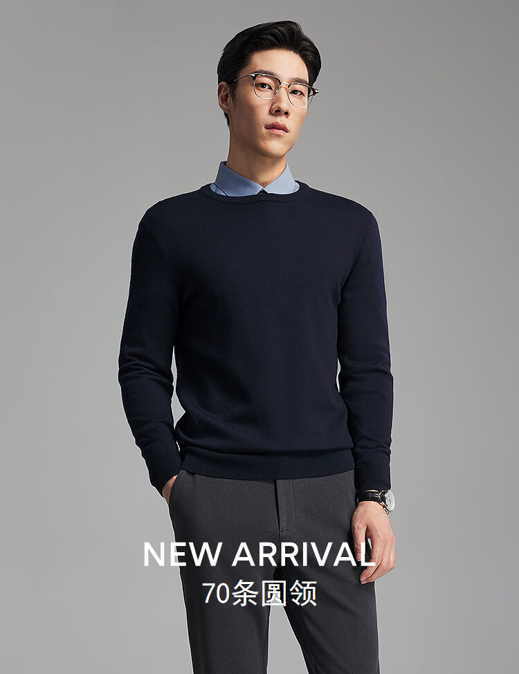 Свитер Youngor, мужской цельношерстяной свитер с круглым вырезом из тонкой замши, гладкий, теплый и удобный, новое поступление 2025 года, темно-синий VYQW619964FYA M, 100 см (рекомендуемый вес 125-145 Джин Цзинь равен 0,5 кг)