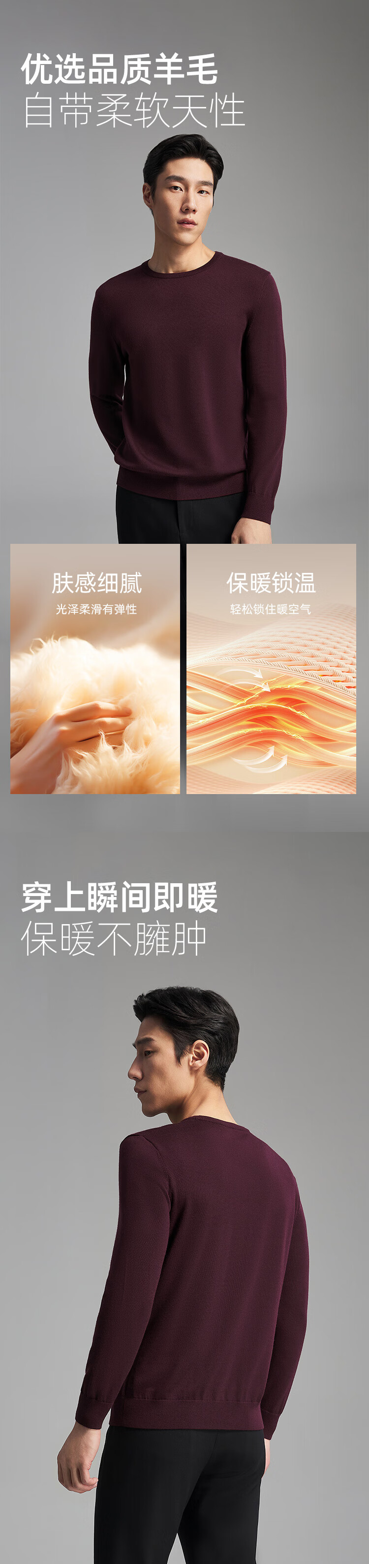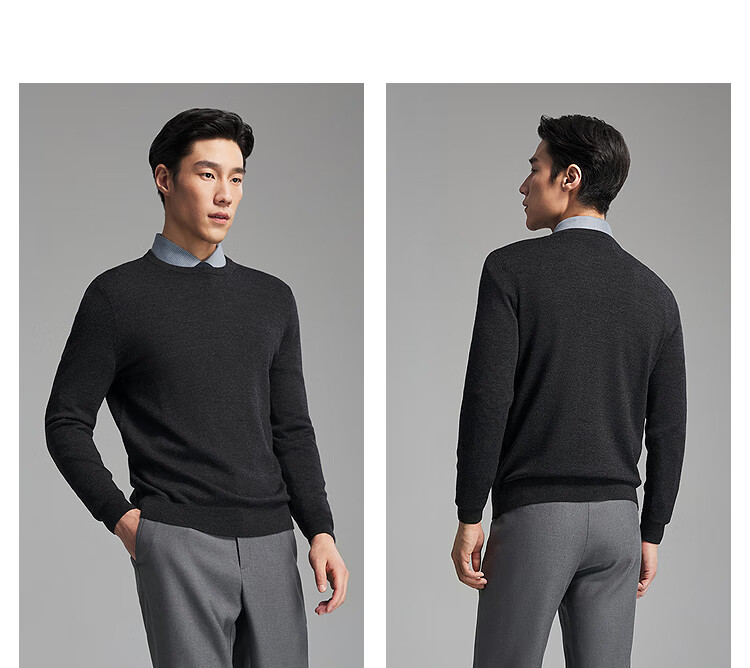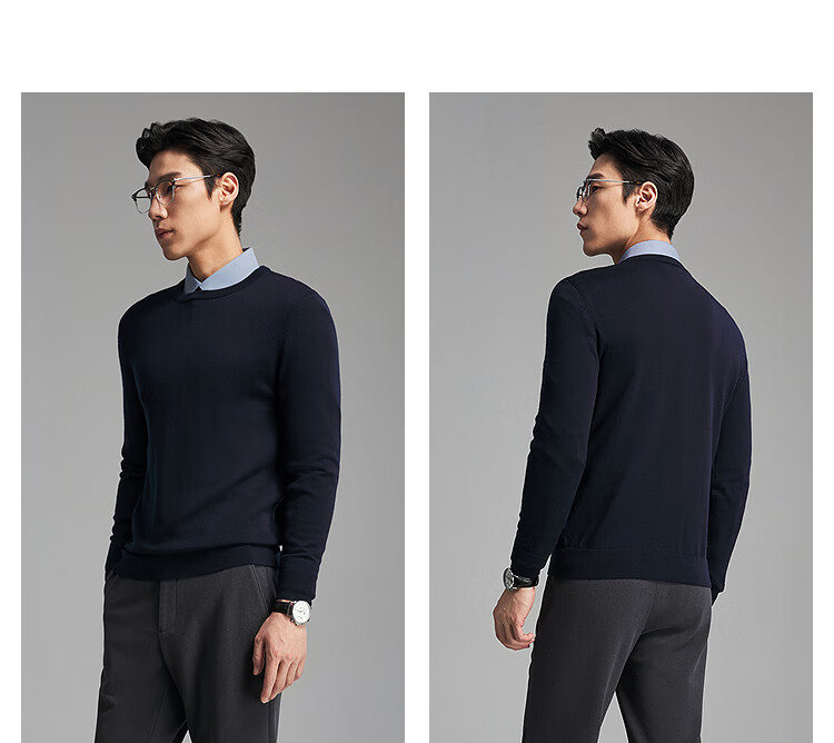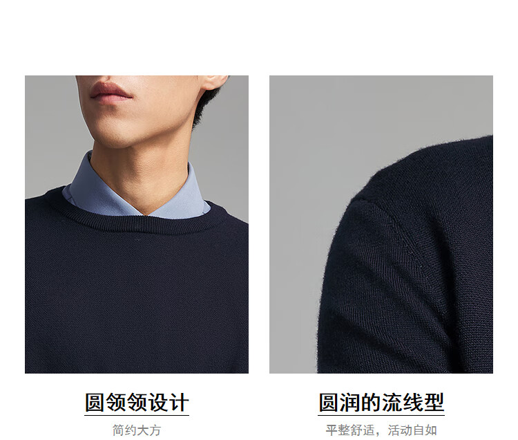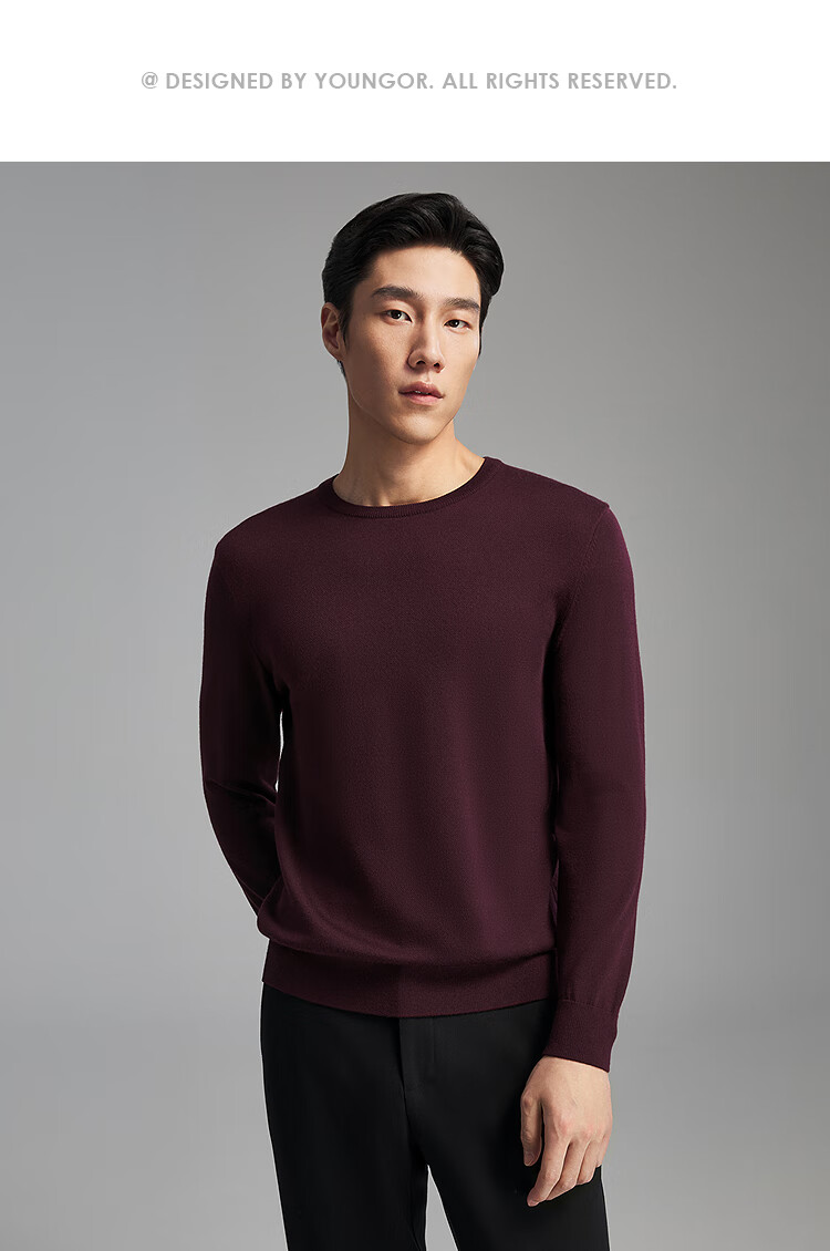 Свитер Youngor, мужской цельношерстяной свитер с круглым вырезом из тонкой замши, гладкий, теплый и удобный, новое поступление 2025 года, темно-синий VYQW619964FYA M, 100 см (рекомендуемый вес 125-145 Джин Цзинь равен 0,5 кг)