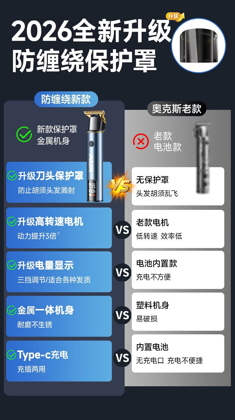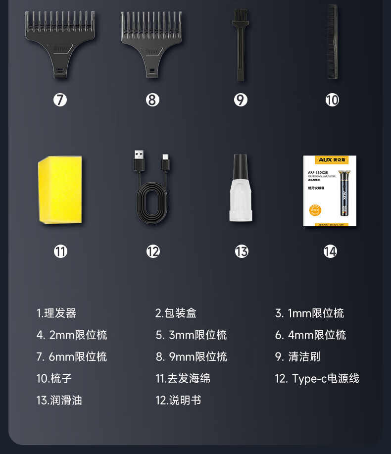 Oaks (AUX) hair clipper electric clipper home electric clipper for shaving your own head artifact men's special oil head carving clipper shaving salon shaver standard carving/bald/trimming/oil head