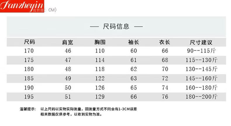 China (cm) 165 / 88-90 170 / 96-98 175 / 108-110 180 / 118-122 185 / 126-130