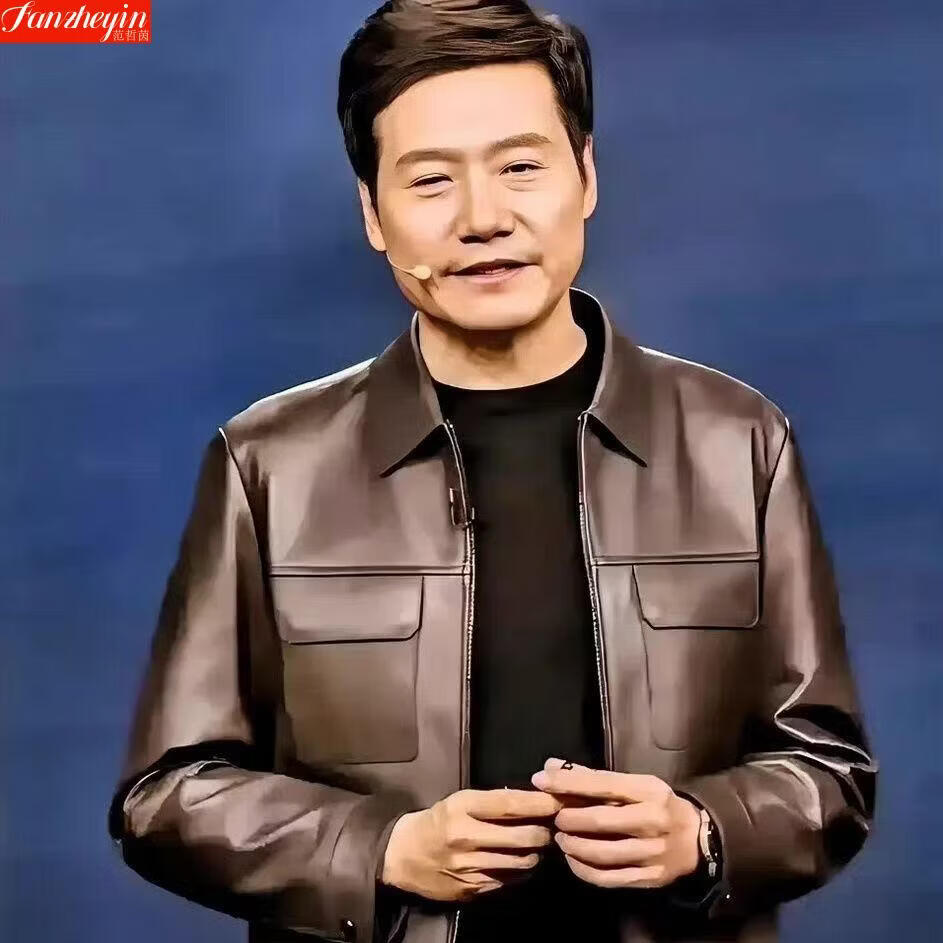 Fan Zheyin's high-quality Lei Jun's same style CEO leather jacket men's spring and autumn simulated leather business lapel motorcycle leather black Lei Jun L (165)