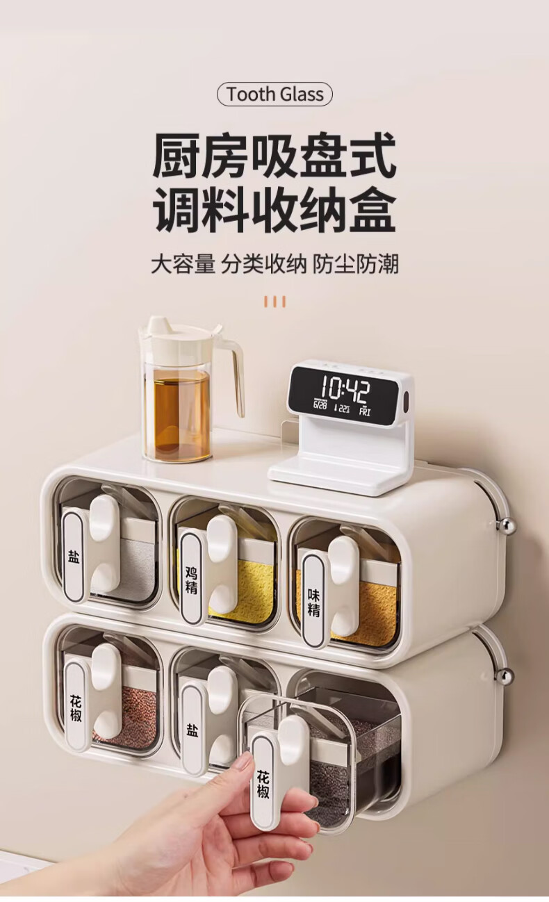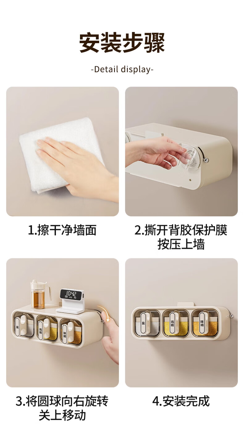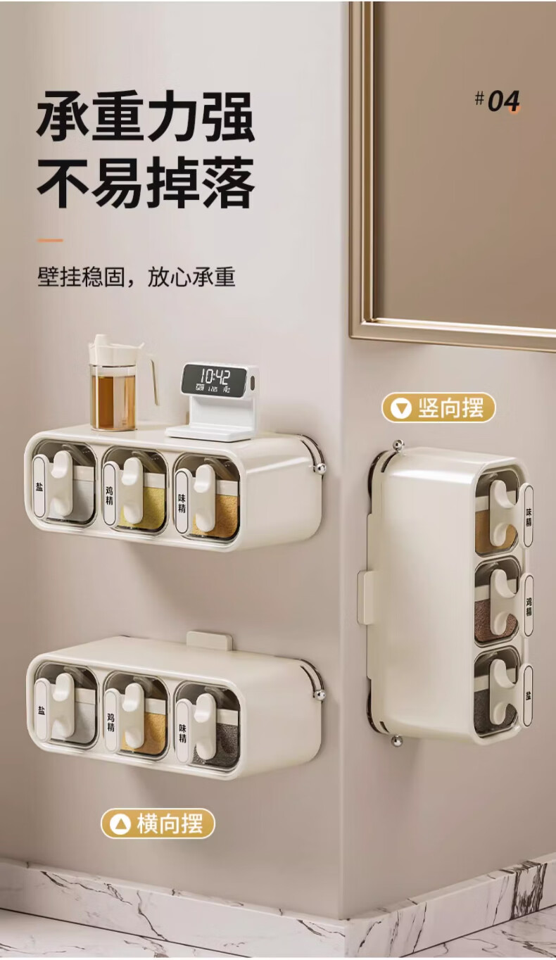 Home Story (KATEI STORY) Japan's 2025 new seasoning box suction cup wall-mounted seasoning jar kitchen seasoning storage box moisture-proof salt jar upgraded milk silver three-compartment suction cup removable