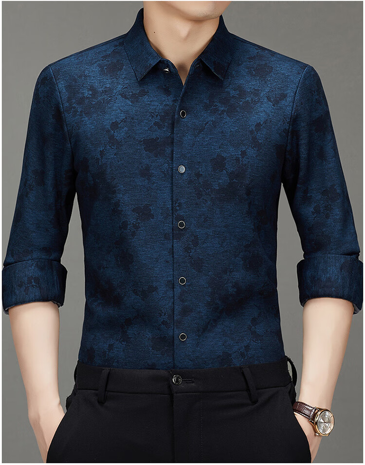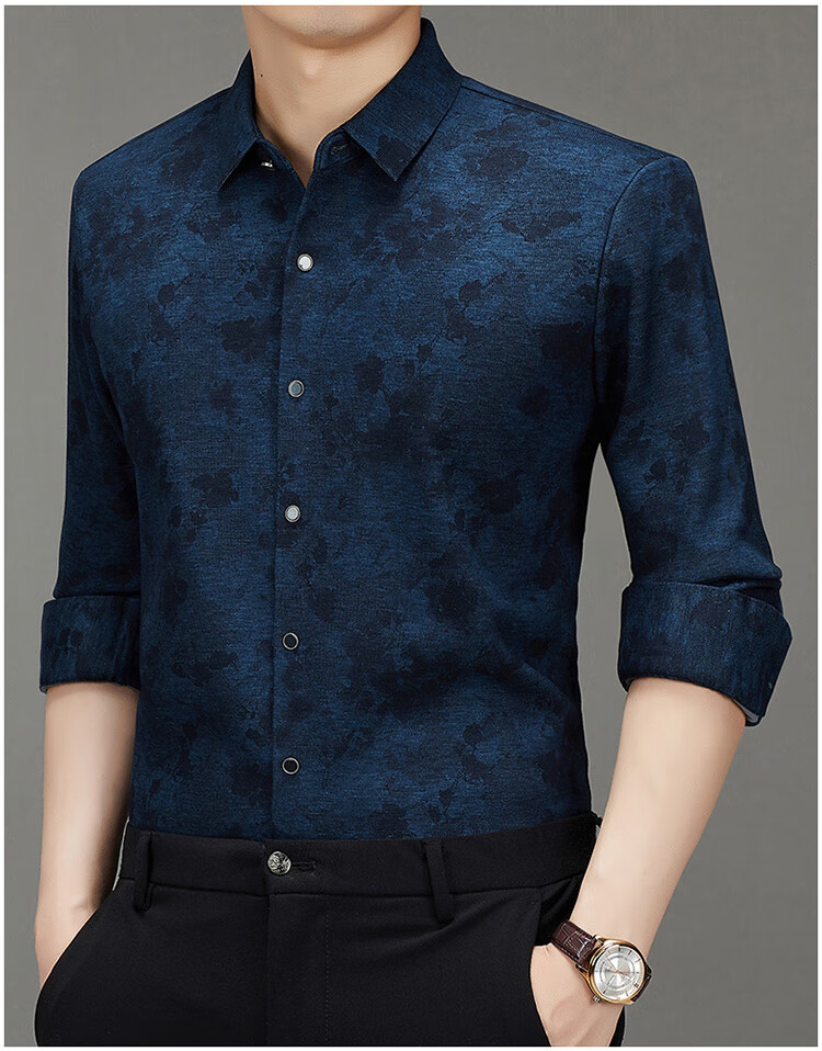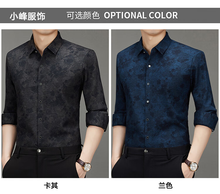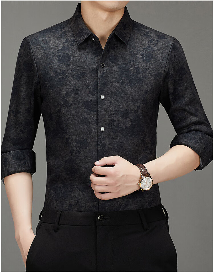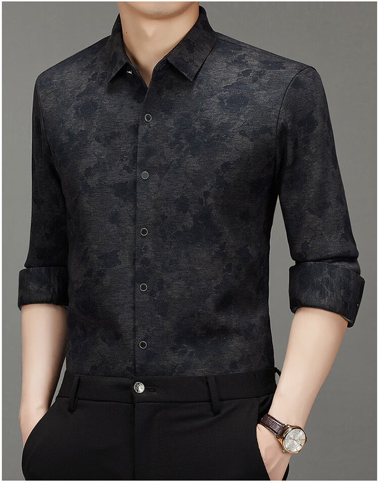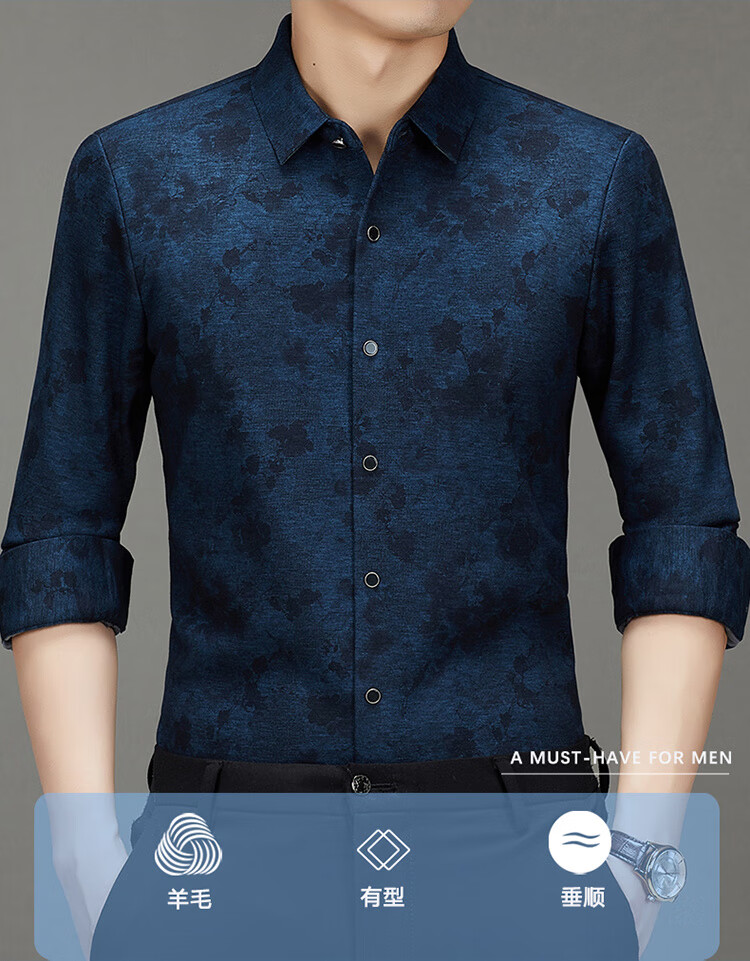 皮尔卡丹轻奢高端羊毛加绒加厚长袖衬衫男秋冬季印花商务休闲免烫抗皱衬衣 Y5羊毛加毛绒长衣袖卡其 L 175/92A 建议140-155斤