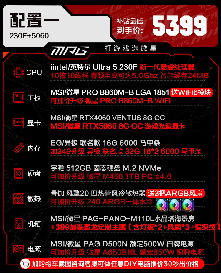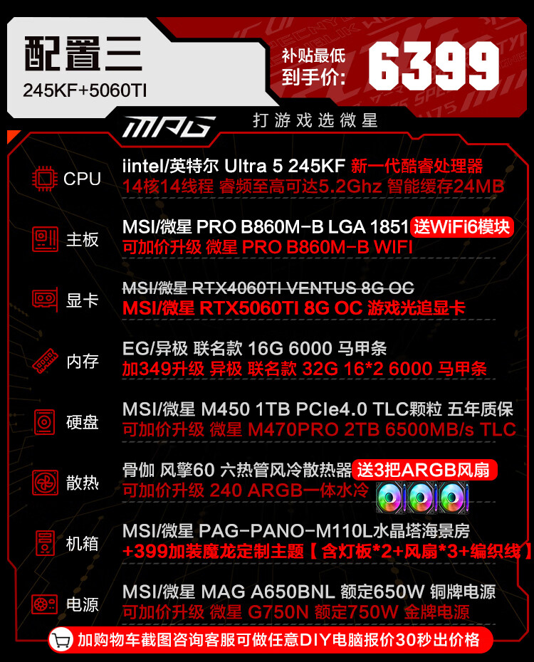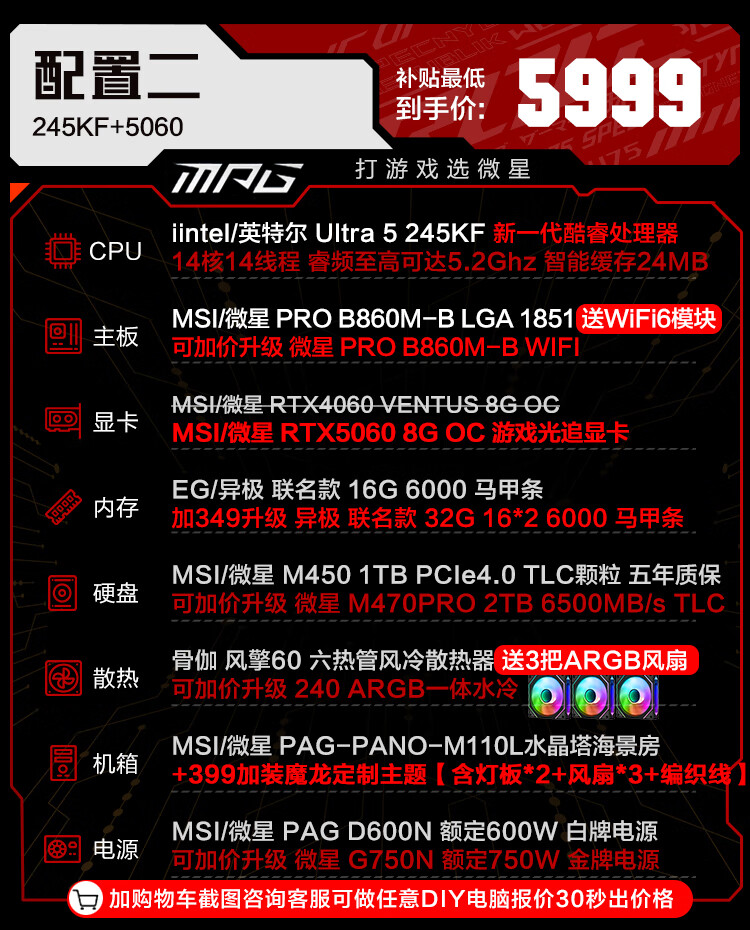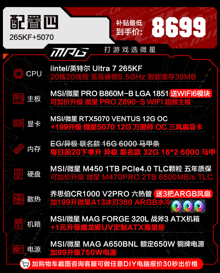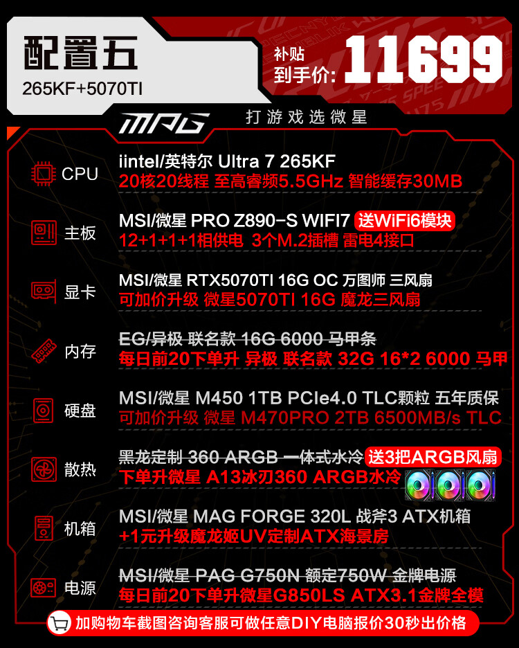 MSI family bucket U7 265KF MSI 5070/5070TI/5080 graphics card e-sports game desktop assembly computer AI host DIY complete machine U7 265KF+5070丨four