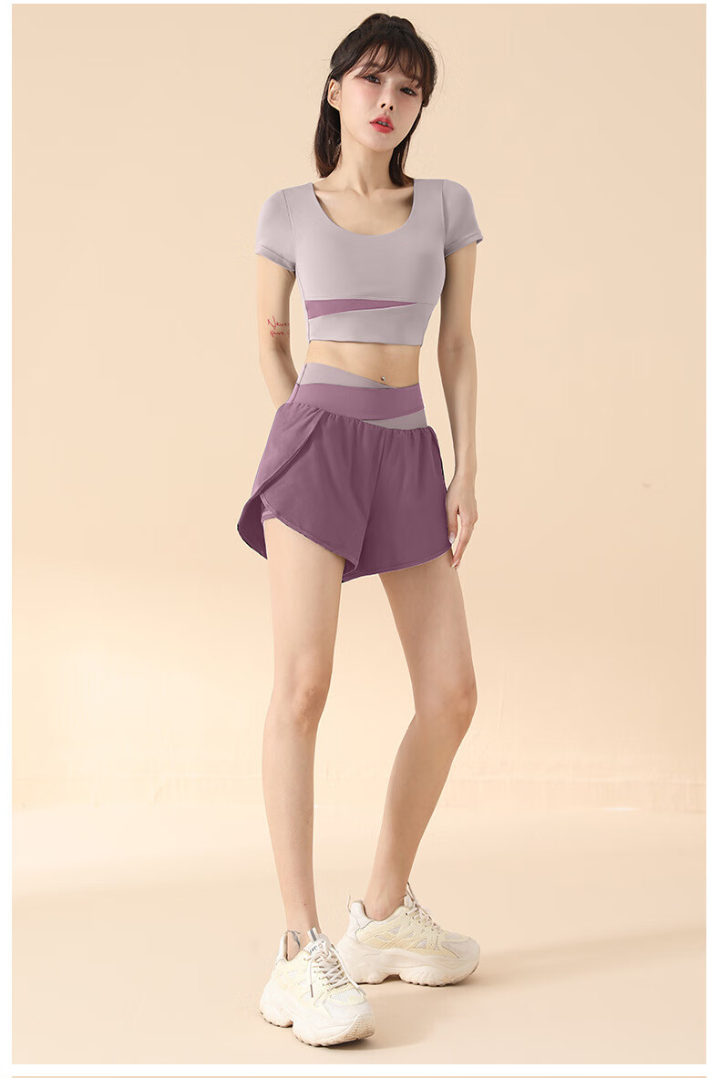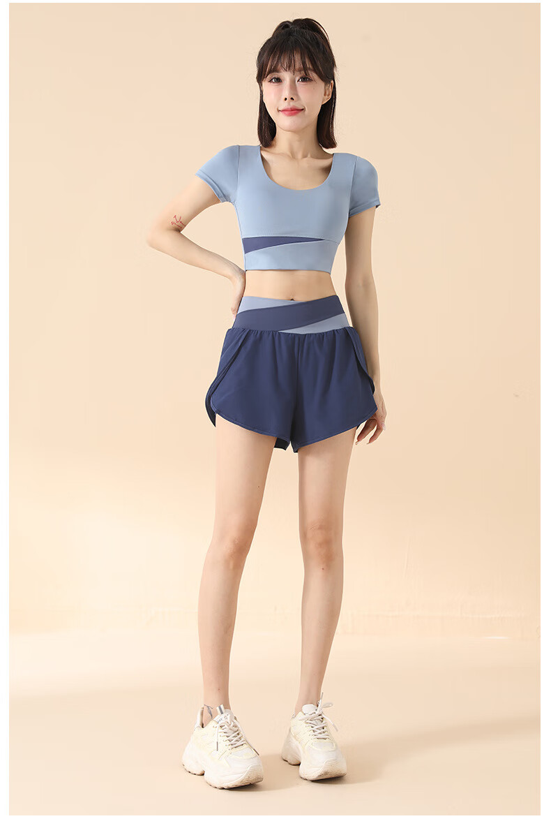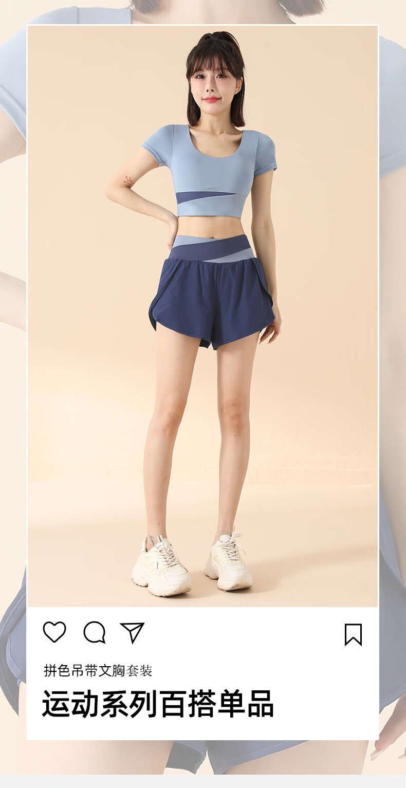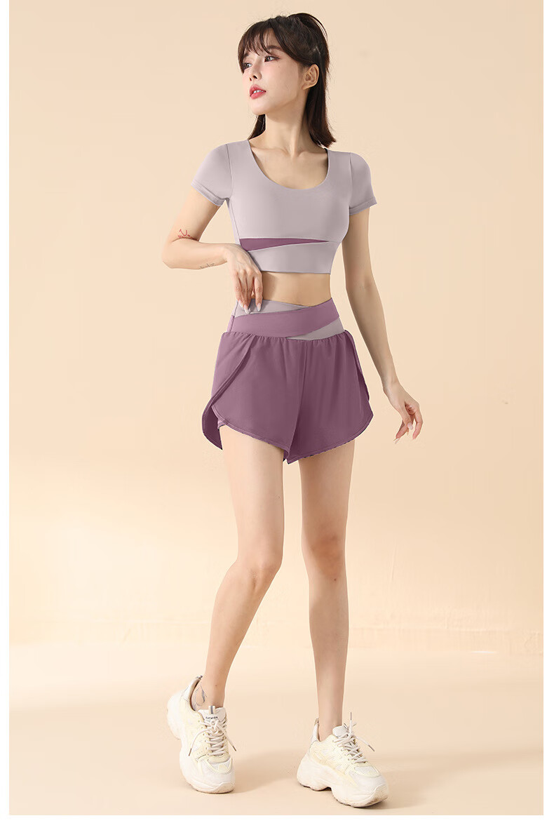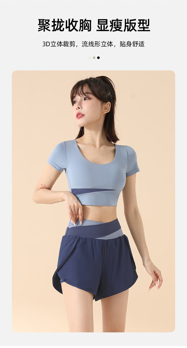 2025 New Yoga Suit Women's Pilates Training with Chest Pad Running Fitness Sports Yoga Wear Short Sleeve Top Star Black Short Sleeve + Star Black Shorts M Recommended 100-115 Jin Jin equals 0.5 kg