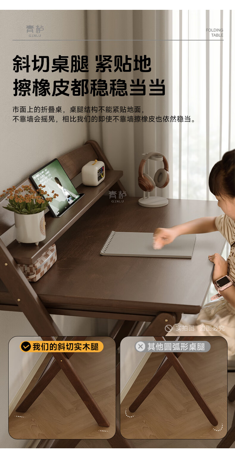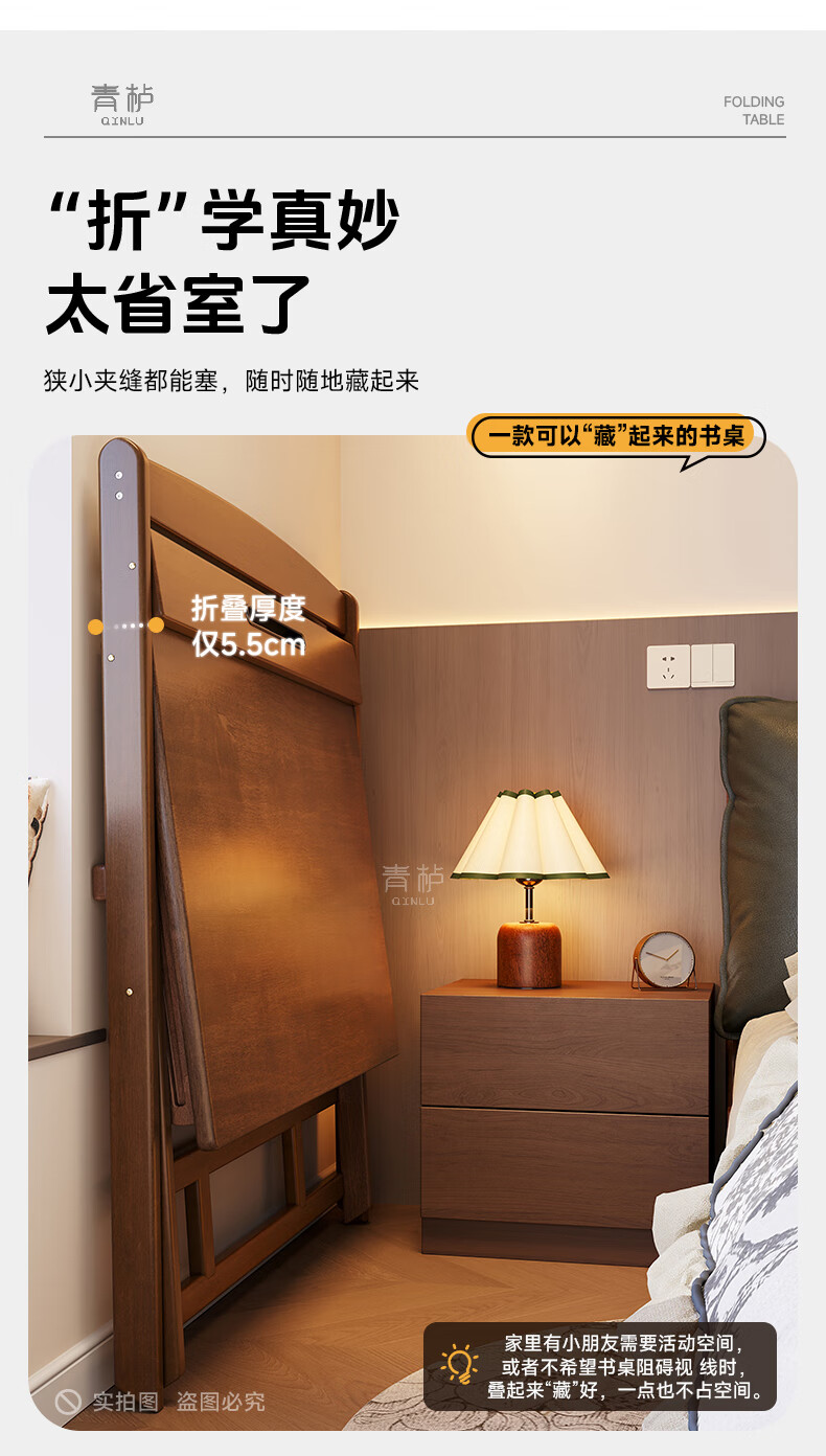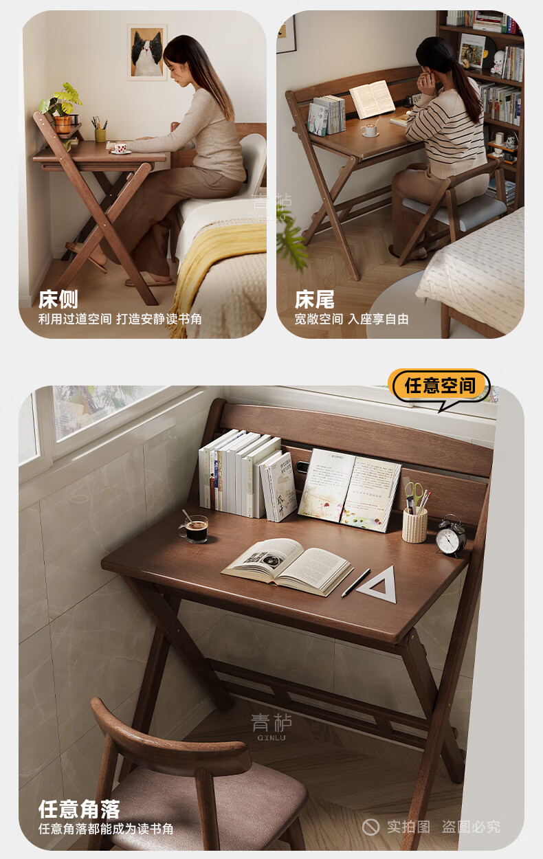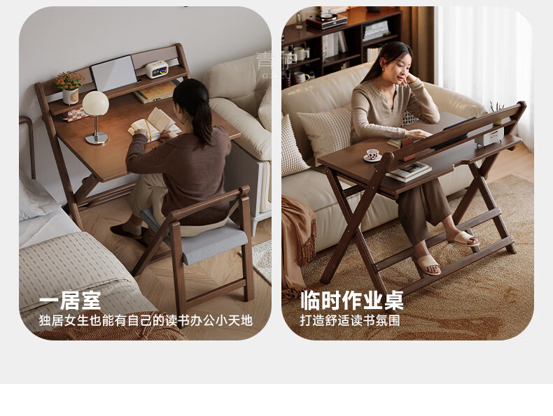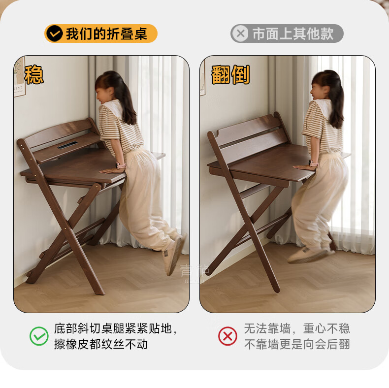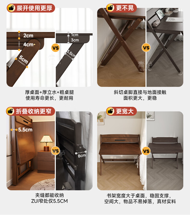 Qingju all solid wood folding desk study table junior high school student home computer desk small apartment foldable writing desk 100*55cm walnut color - thickened desktop - 100% solid wood foldable | thickened solid wood legs | deepened wide desktop