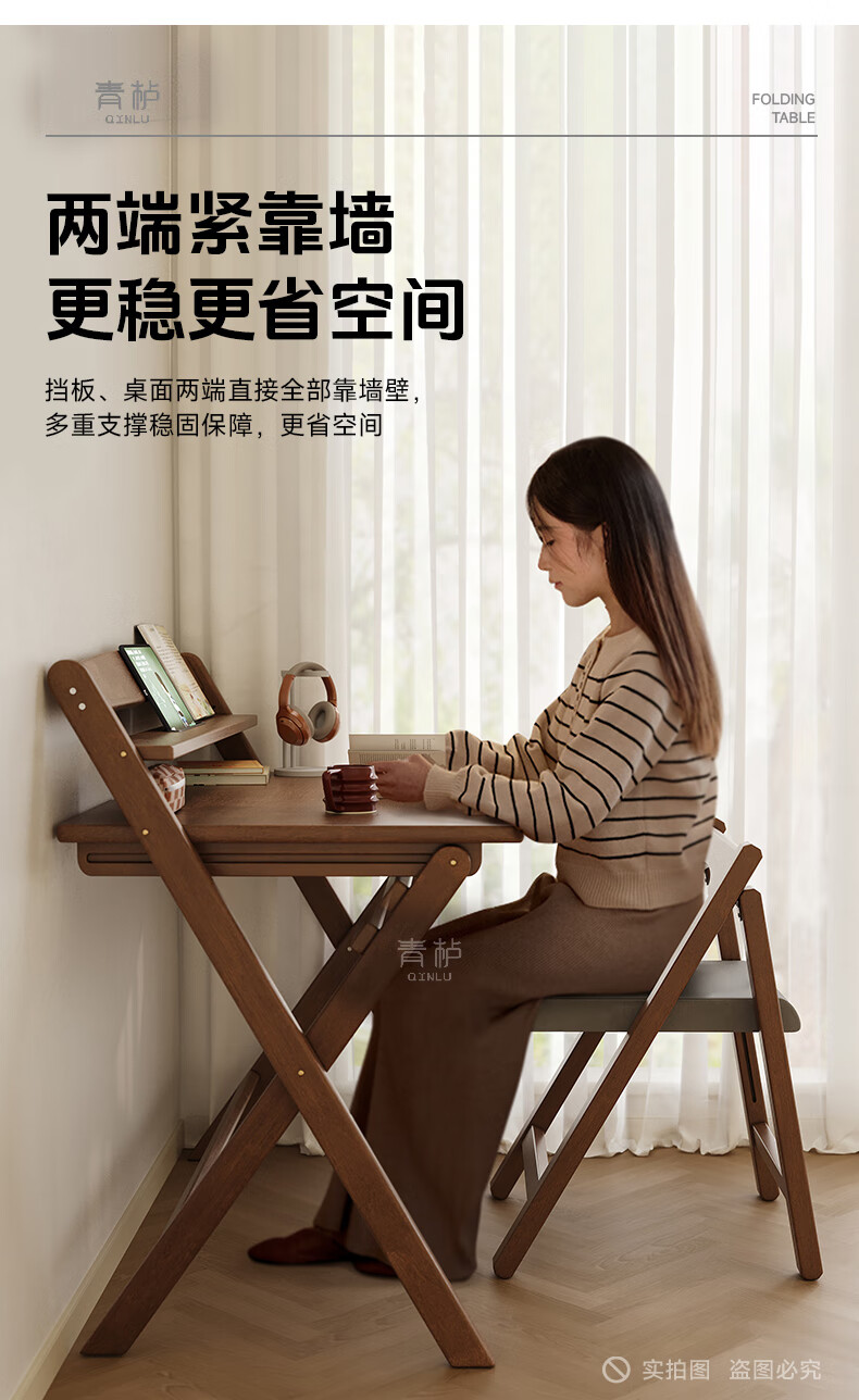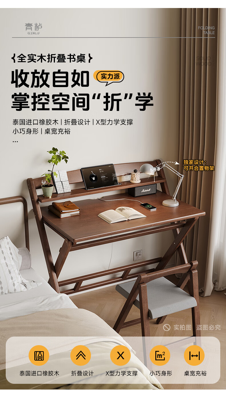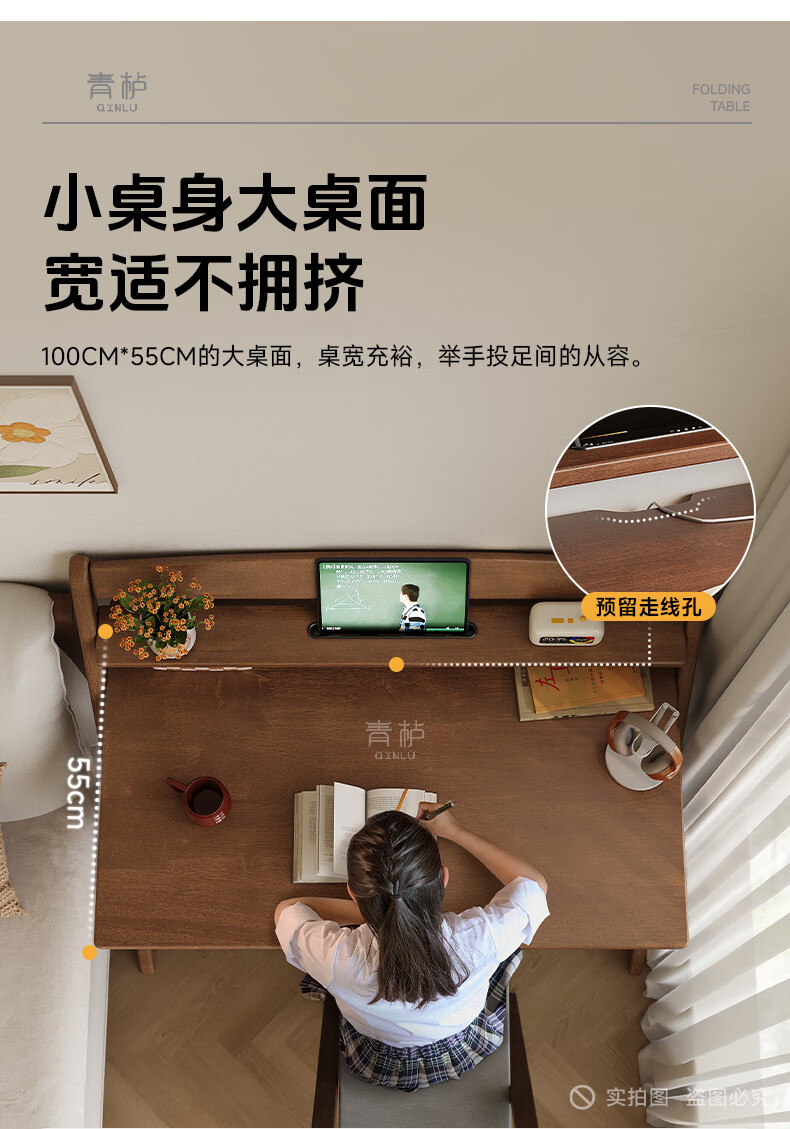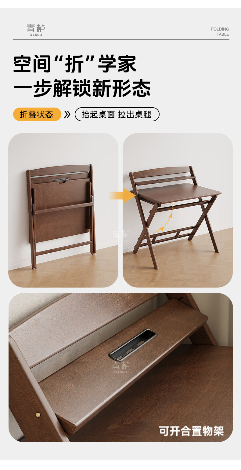 Qingju all solid wood folding desk study table junior high school student home computer desk small apartment foldable writing desk 100*55cm walnut color - thickened desktop - 100% solid wood foldable | thickened solid wood legs | deepened wide desktop