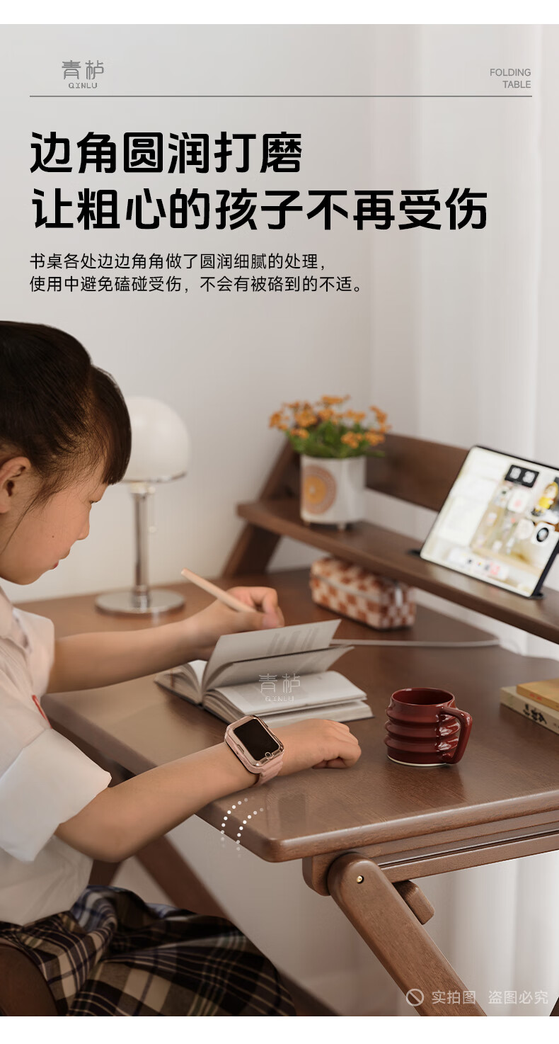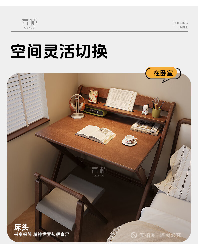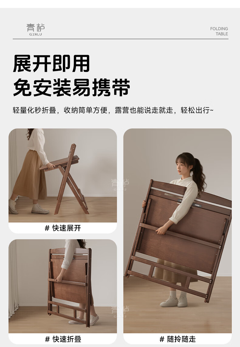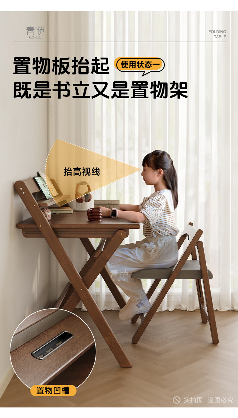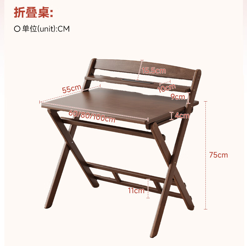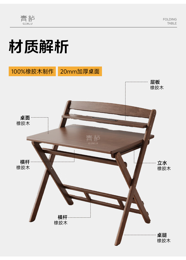 Qingju all solid wood folding desk study table junior high school student home computer desk small apartment foldable writing desk 100*55cm walnut color - thickened desktop - 100% solid wood foldable | thickened solid wood legs | deepened wide desktop