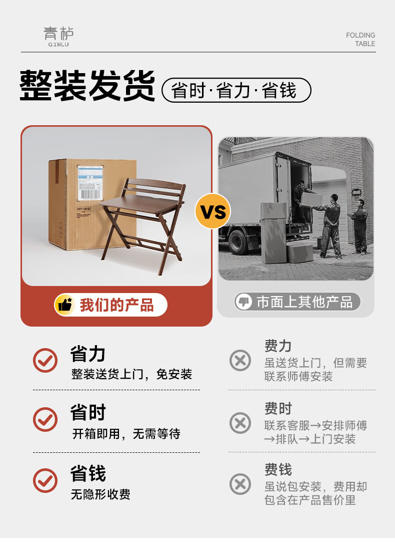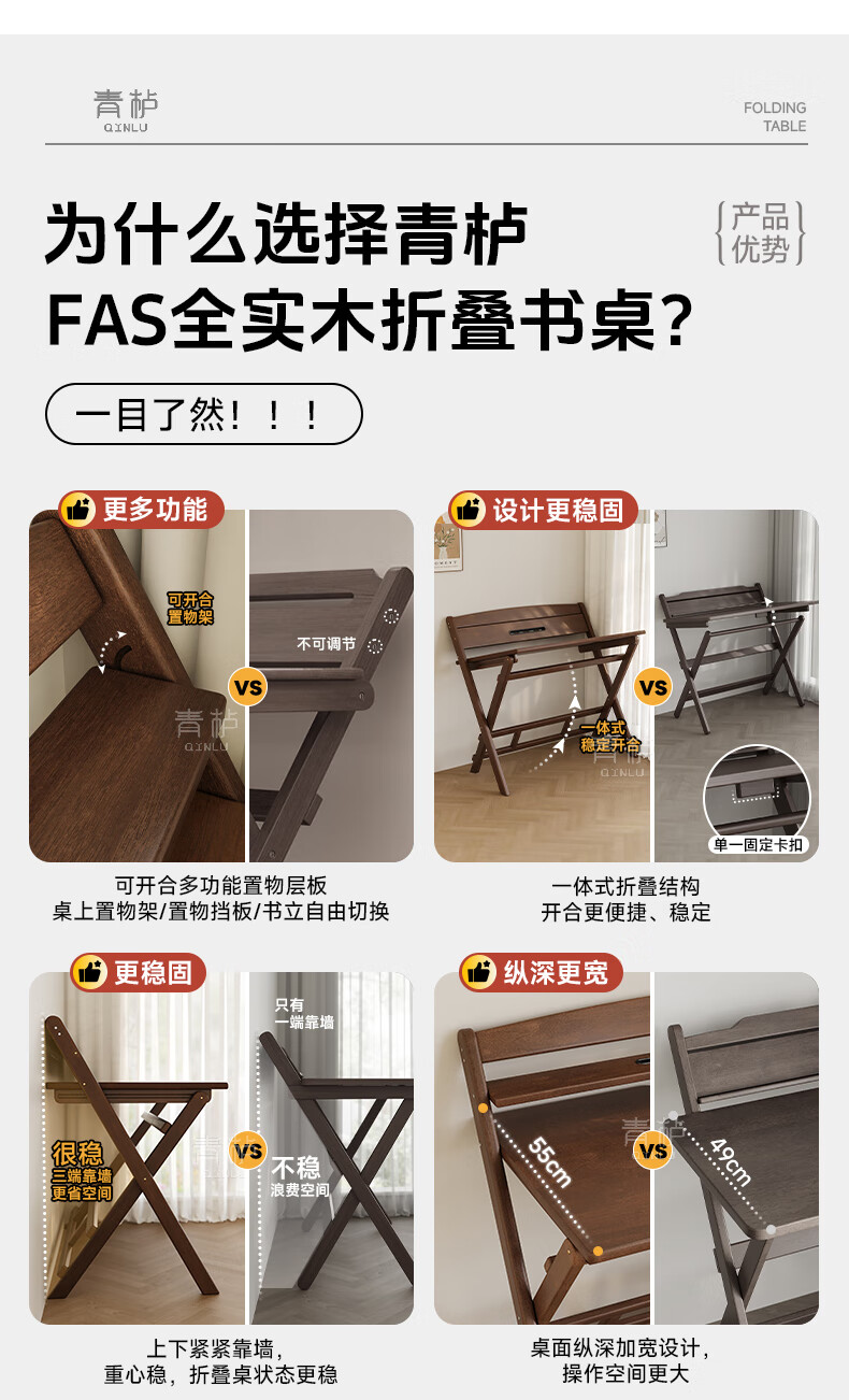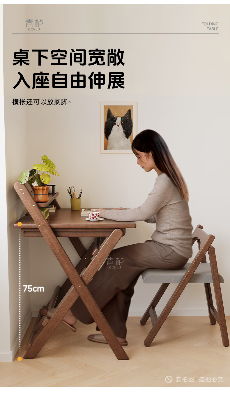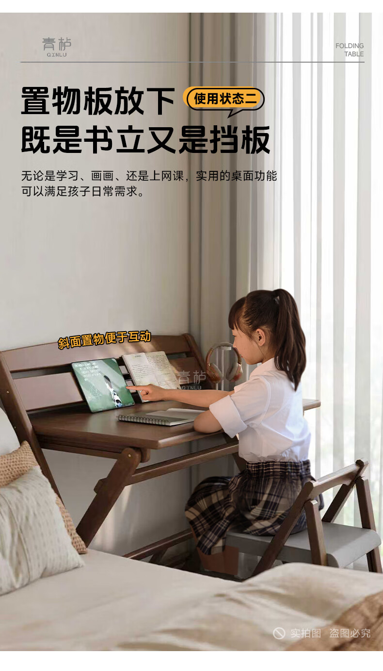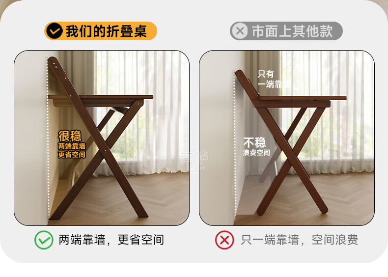 Qingju all solid wood folding desk study table junior high school student home computer desk small apartment foldable writing desk 100*55cm walnut color - thickened desktop - 100% solid wood foldable | thickened solid wood legs | deepened wide desktop