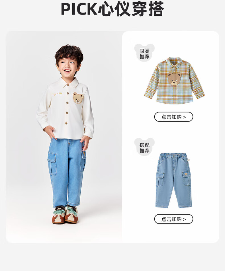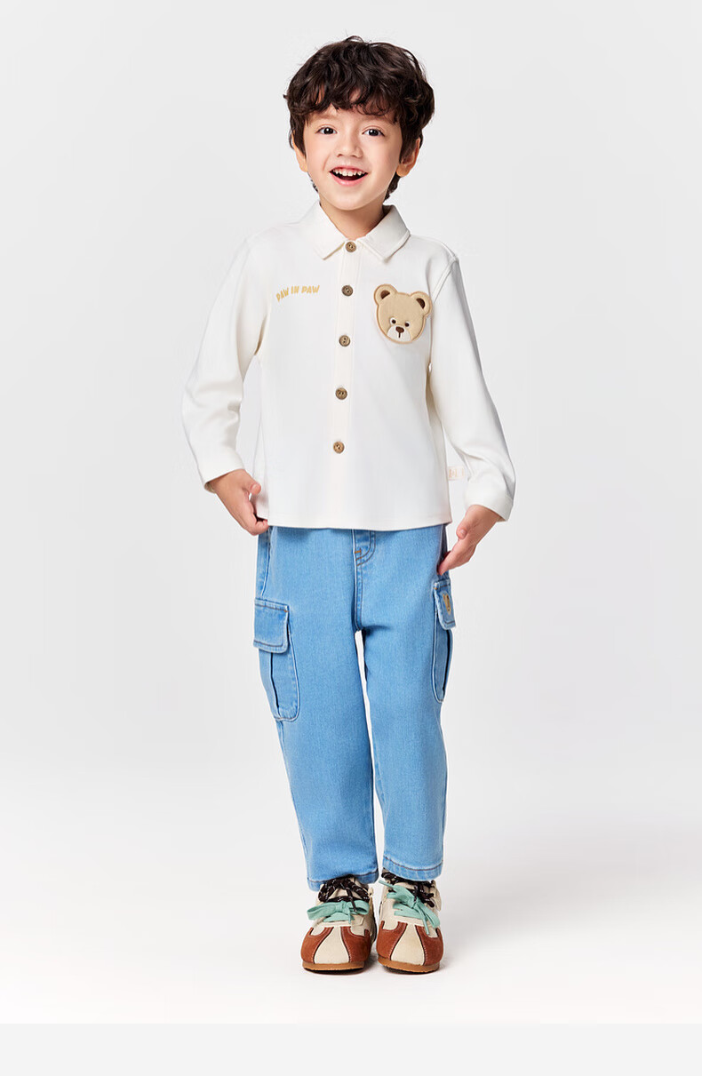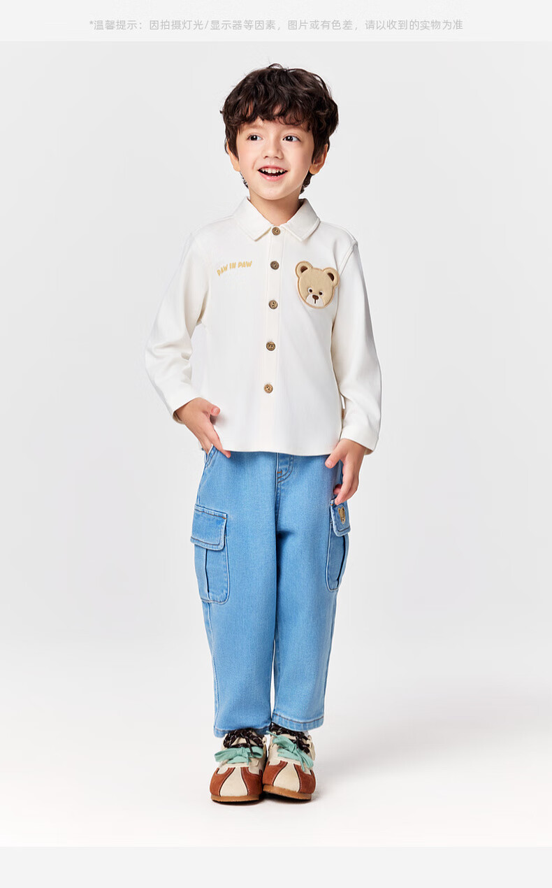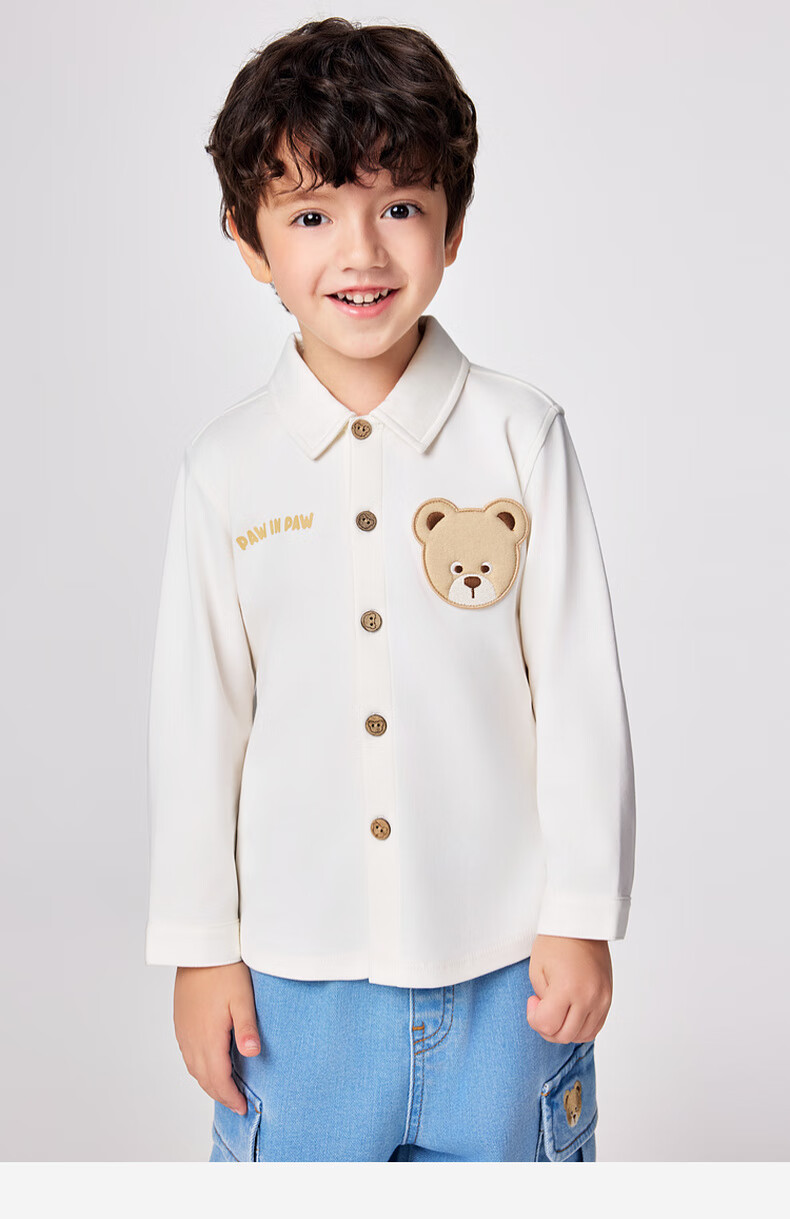 PawinPaw shopping mall same style cartoon bear children's clothing 25th autumn new baby boy casual shirt Ivory ivory/39 90