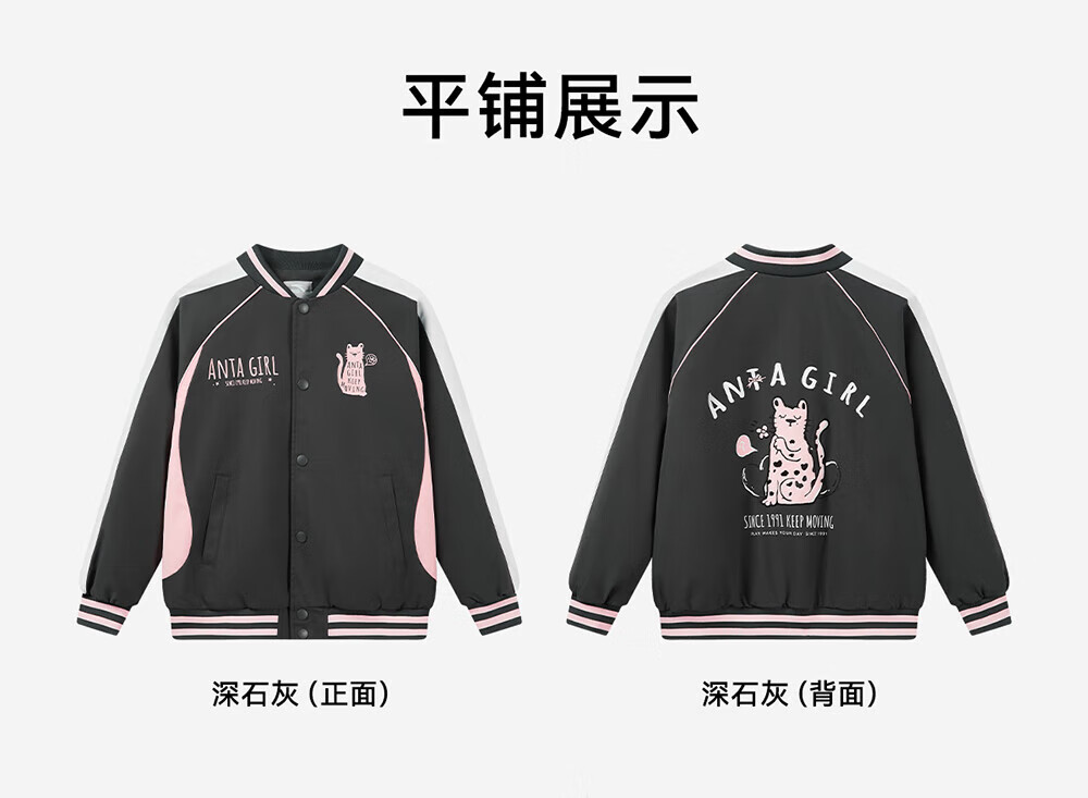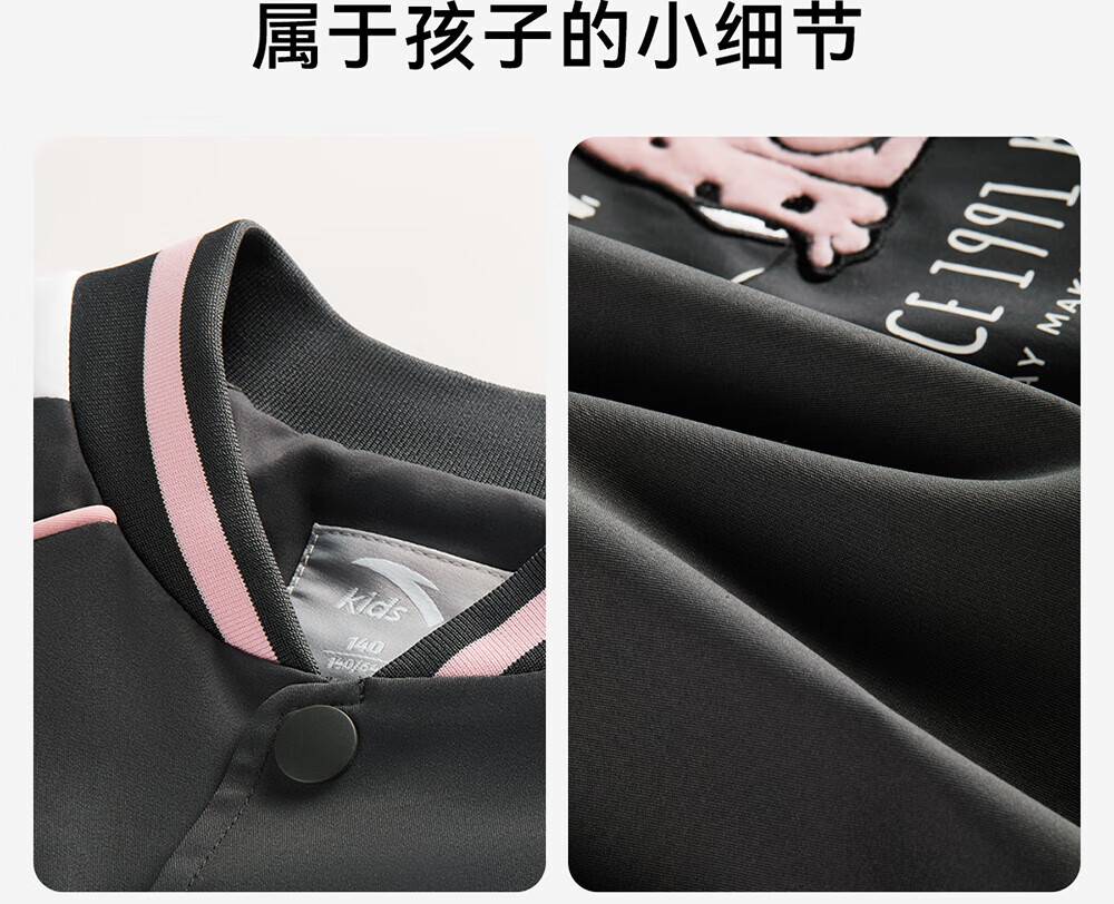 ANTA children's jackets for girls and boys 2025 new autumn trendy breathable quick-drying woven sports sweatshirt tops satin pink-2 170