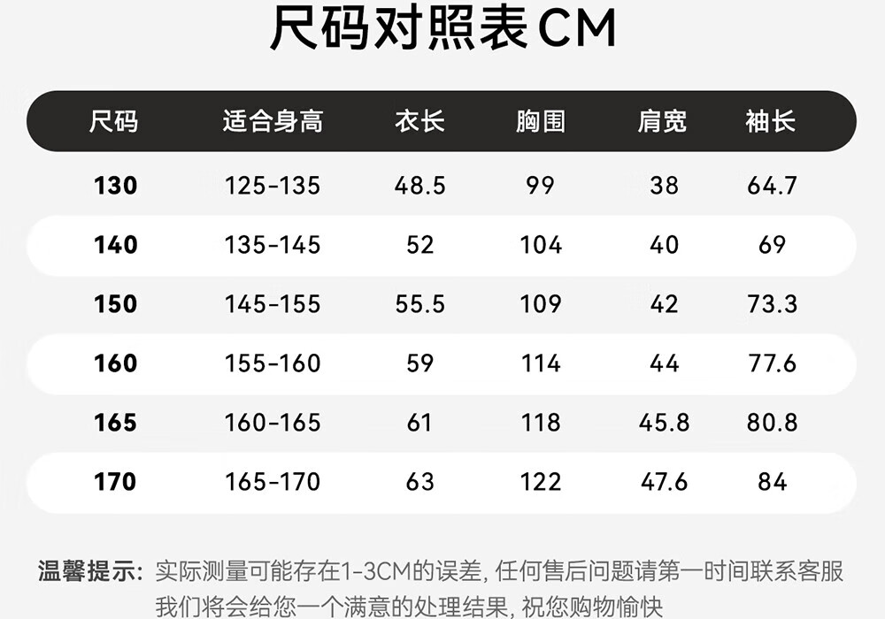 China (cm) 160-165/84-86 165-170 / 88-90 167-172 / 92-96 168-173 / 98-102 170-176 / 106-110