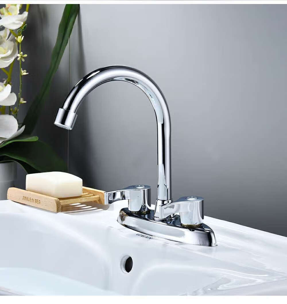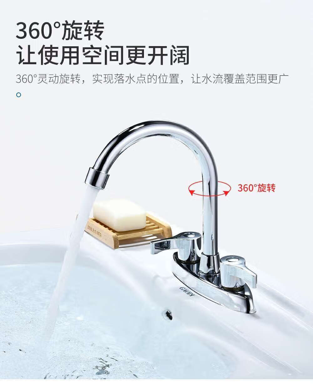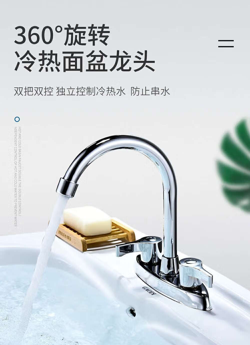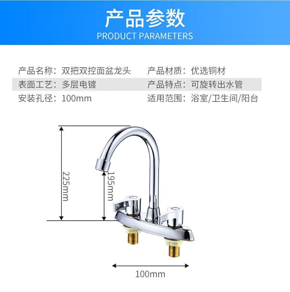 九牧新双用面盆水龙头双把双孔三孔双开关冷热水龙头洗手盆厨房水槽家用 铜经济款龙头
