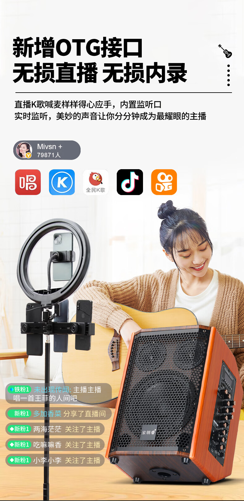 Solange acoustic guitar speaker outdoor audio karaoke dedicated live broadcast internal recording full set of Bluetooth portable playing and singing road show professional outdoor entertainment singing single audio