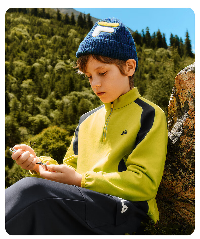 FILA Children's Clothing Long T Category 2025 Winter New Men's and Large Children's Long Sleeve T-Shirt RD Sapphire-NV 160