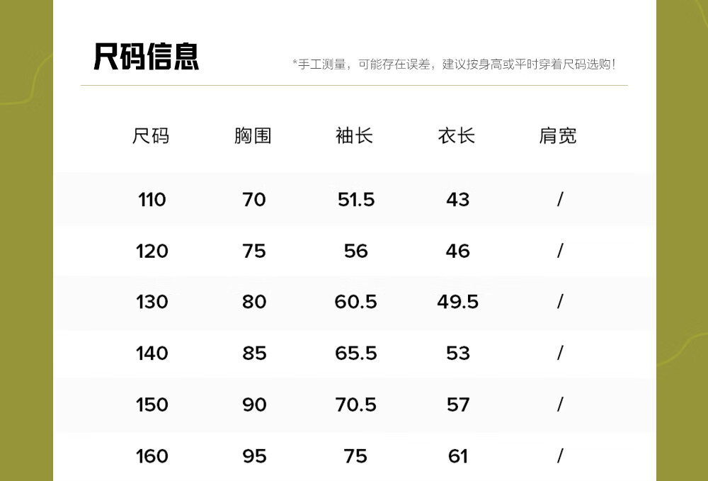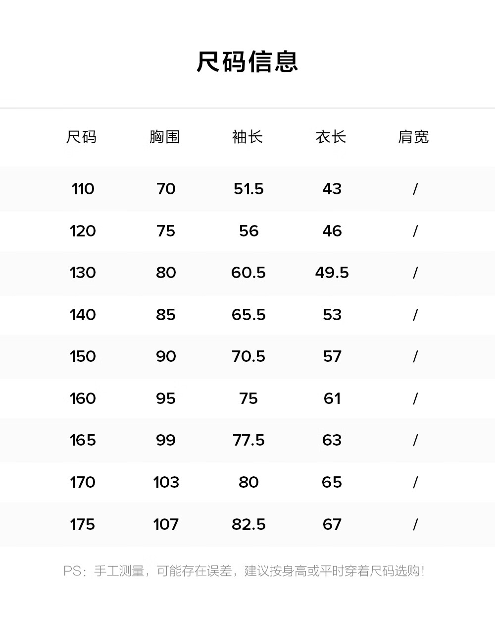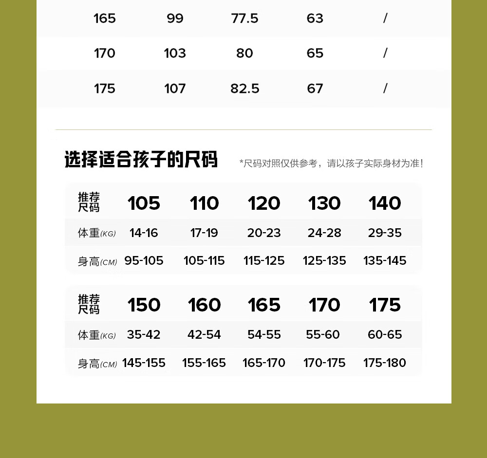 China (cm) 160-165/84-86 165-170 / 88-90 167-172 / 92-96 168-173 / 98-102 170-176 / 106-110