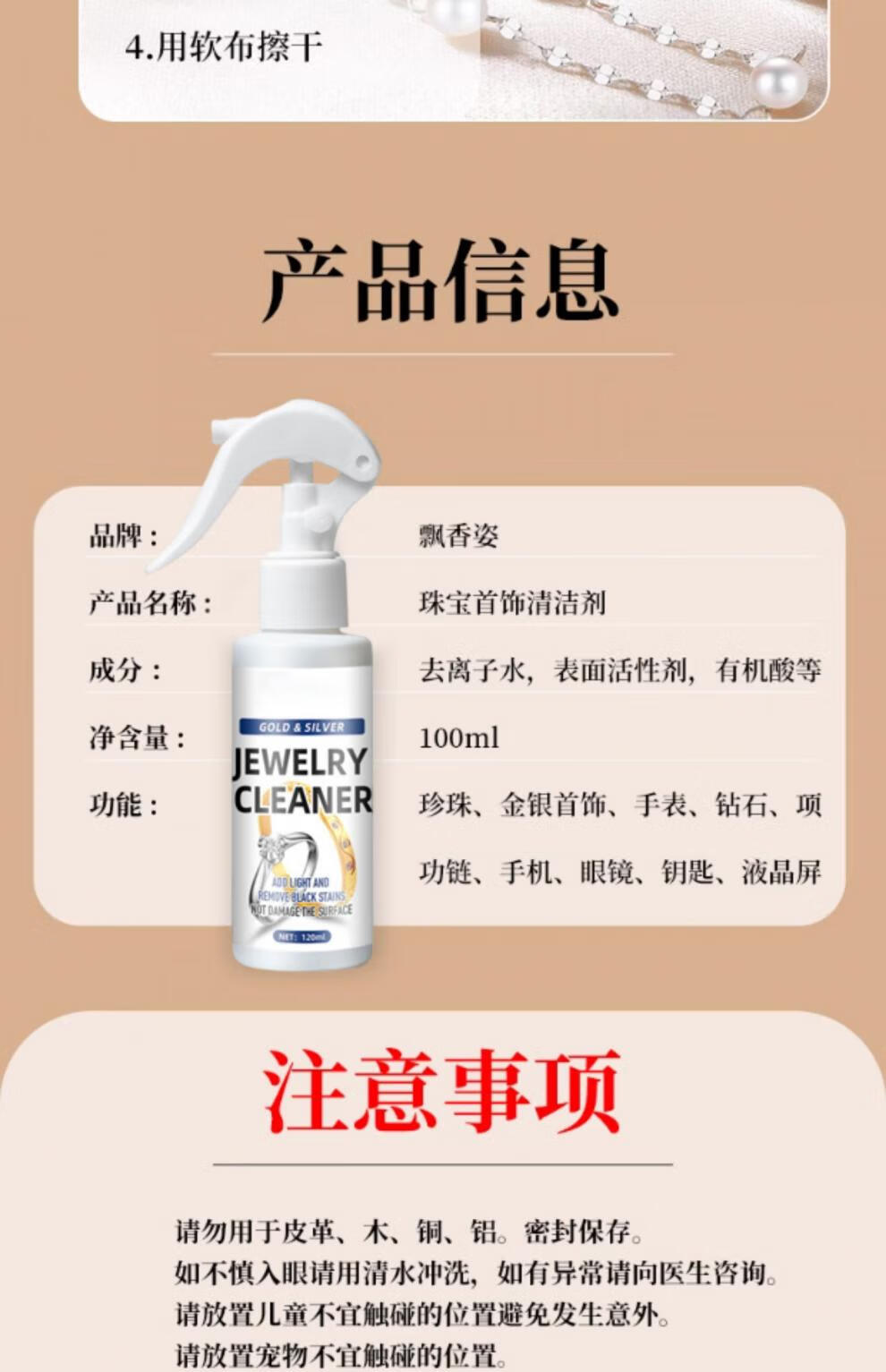 Piaoxiangzi Pearl Cleaning Agent Liquid Jewelry Gold and Silver Jewelry Store Cleaning Water Care Solution Oxidation Brightening Maintenance Cleaning Agent Single Bottle