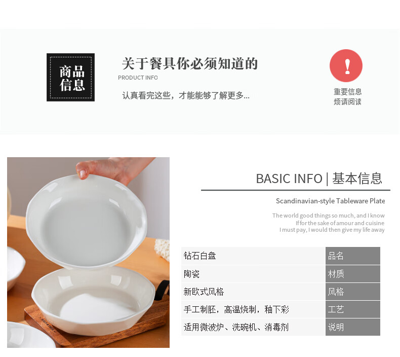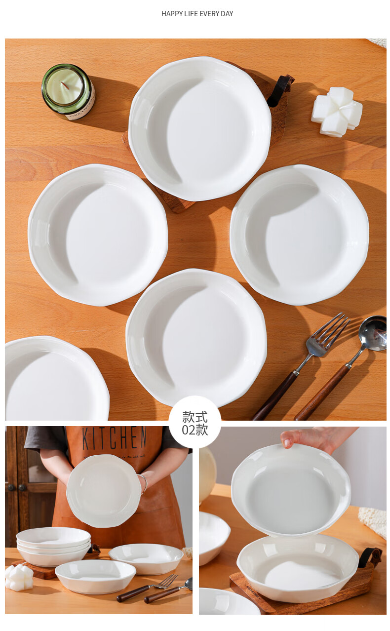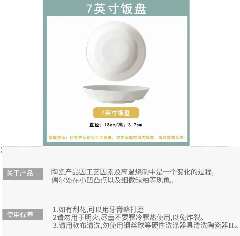 7-inch white diamond ceramic plate, home creative dish plate, high-looking cooking plate, simple and versatile round plate, 1 piece of 7-inch diamond plate, white