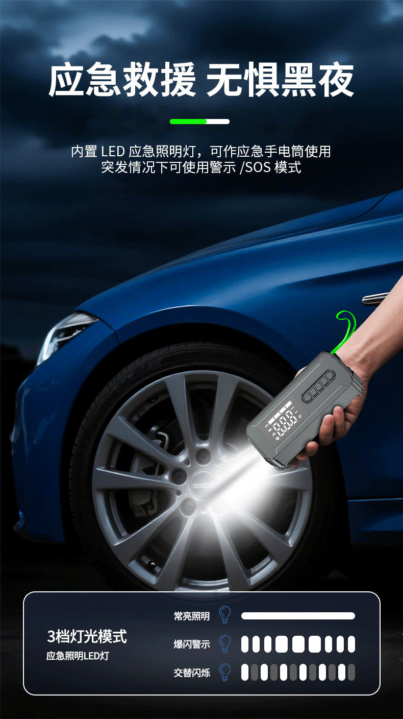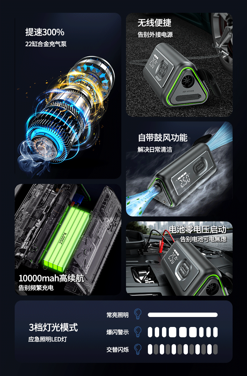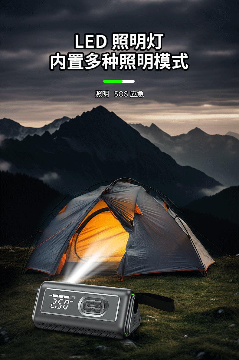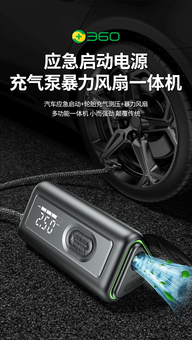 360 emergency starting power supply 12V car power bank car high-pressure air pump lighting blower all-in-one outdoor 21-cylinder 74-watt car wireless air pump