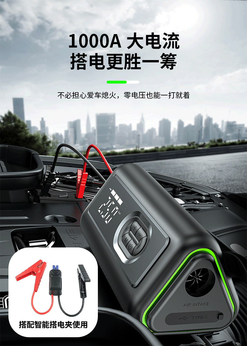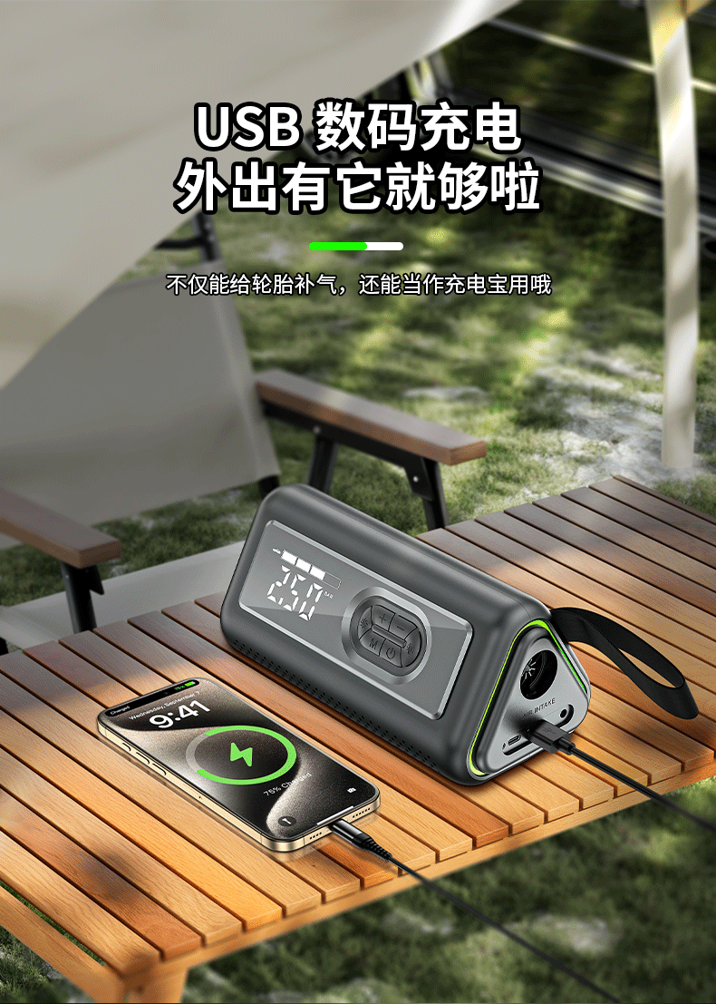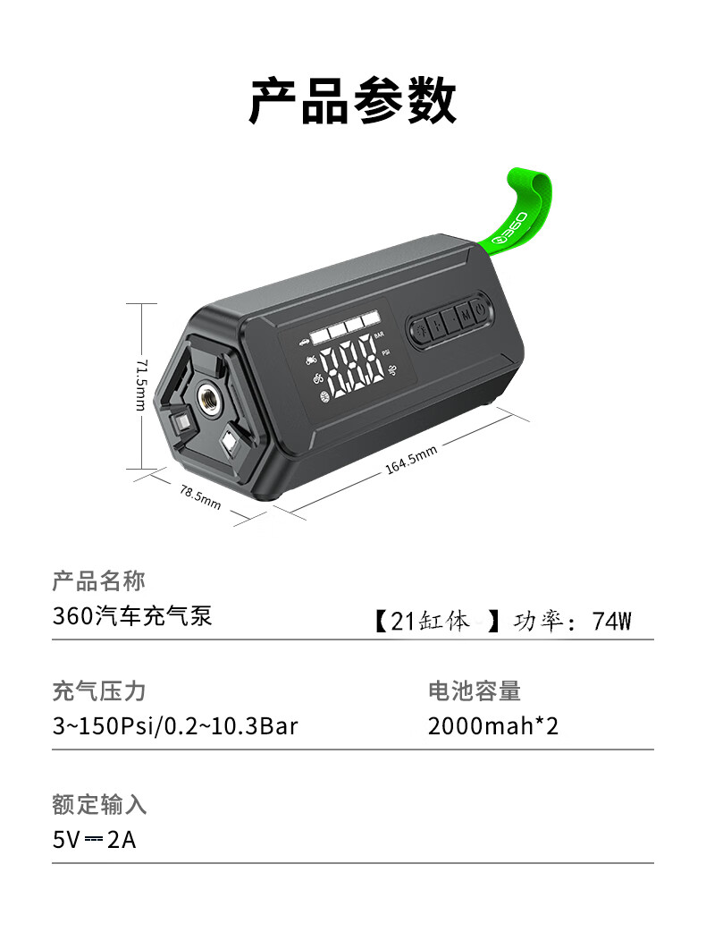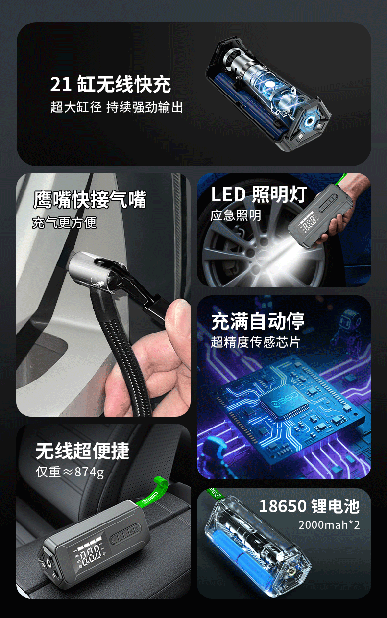 360 emergency starting power supply 12V car power bank car high-pressure air pump lighting blower all-in-one outdoor 21-cylinder 74-watt car wireless air pump