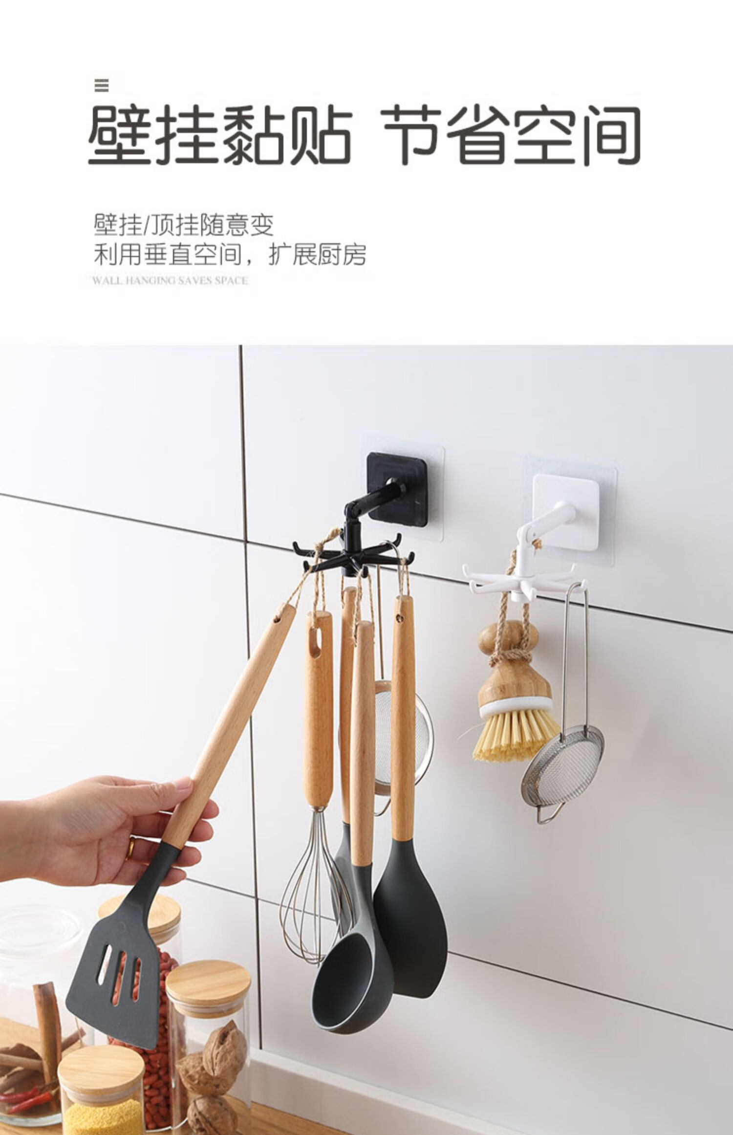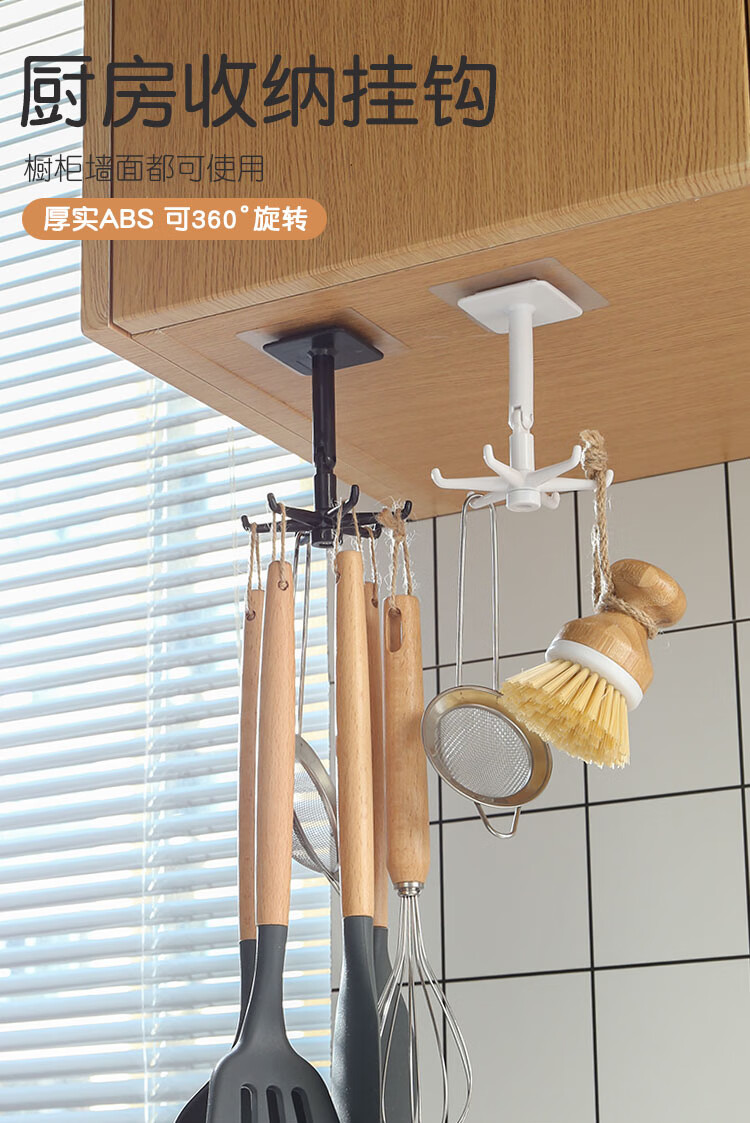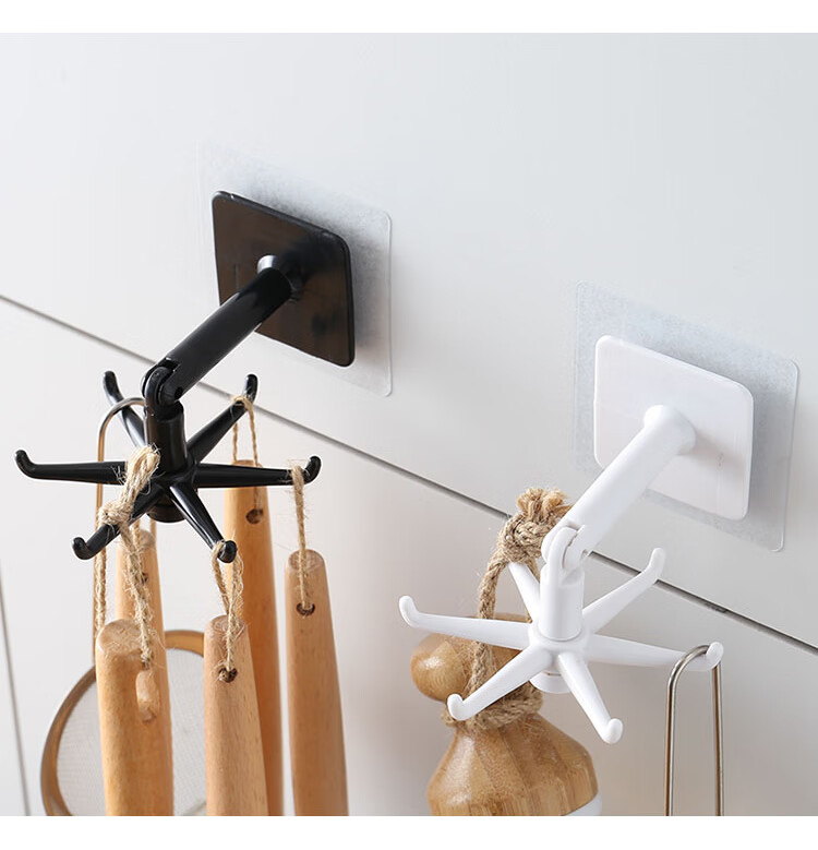 Xinke 1 Yuan Clearance Kitchen Octopus Rotating Kitchen Suction Cup Hook No-Punch Kitchenware Spatula Hanger Six-claw Rotating Hook 4 Pack