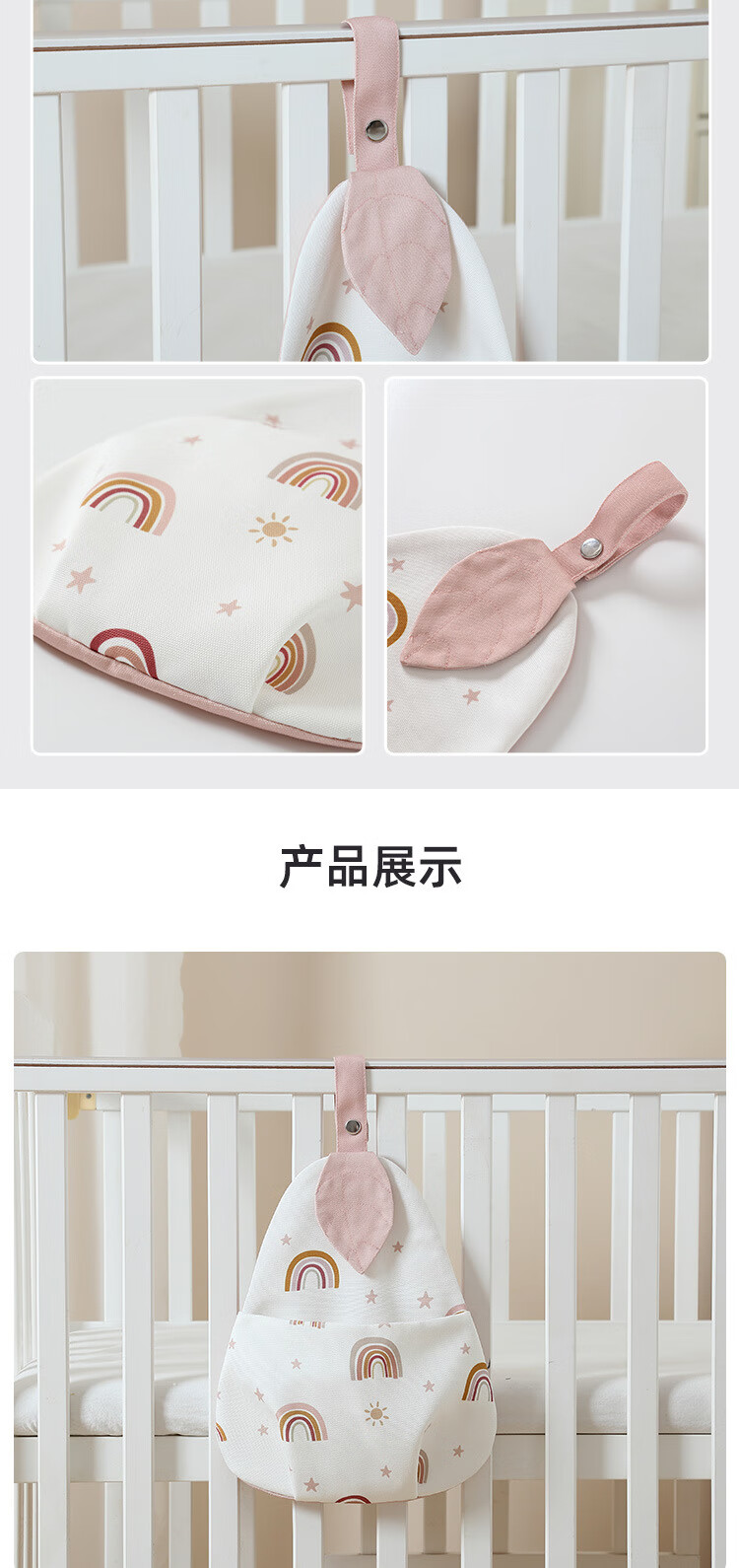 Baby crib hanging bag hanging basket bedside storage bag children multifunctional washable diaper storage bag bedside storage bag leaf rainbow hanging bag (leaf pear-shaped storage bag)