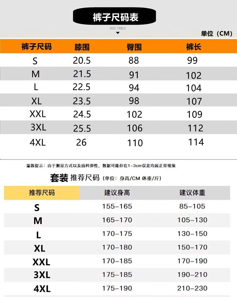 China (cm) 165 / 88-90 170 / 96-98 175 / 108-110 180 / 118-122 185 / 126-130