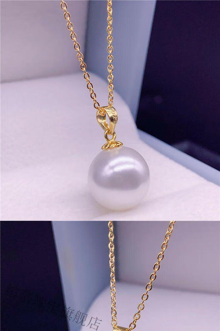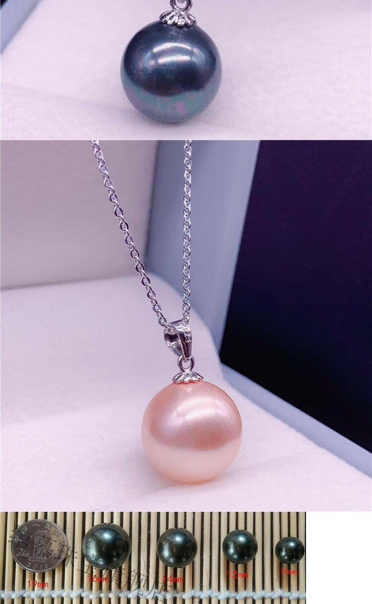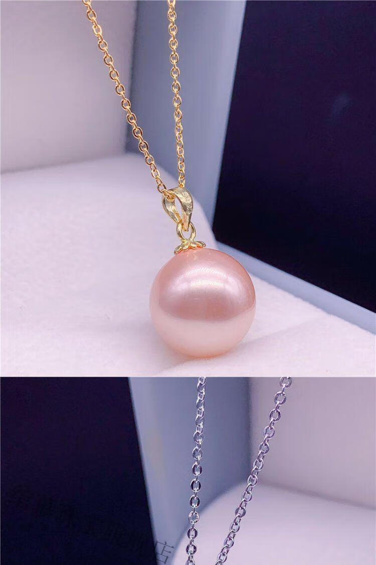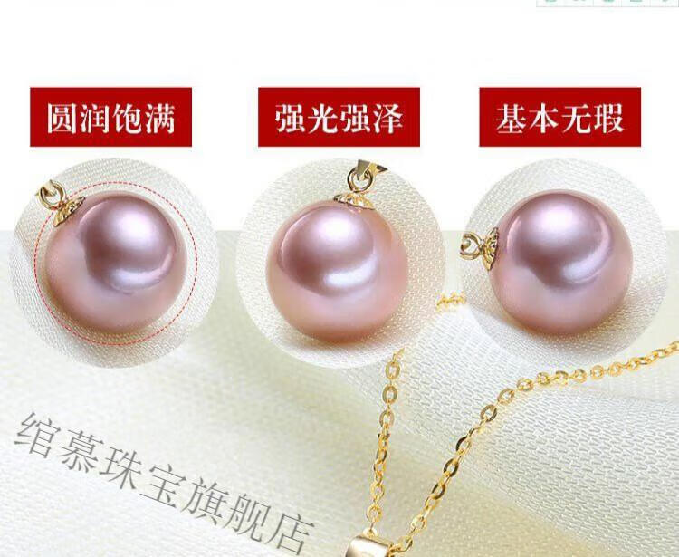 DENIOT Pearl Necklace Single 925 Silver Purple Freshwater Pearl Powder Pendant Perfect Round Bright Light Mom Girlfriend Gold Beads Gold Holder 16-17mm