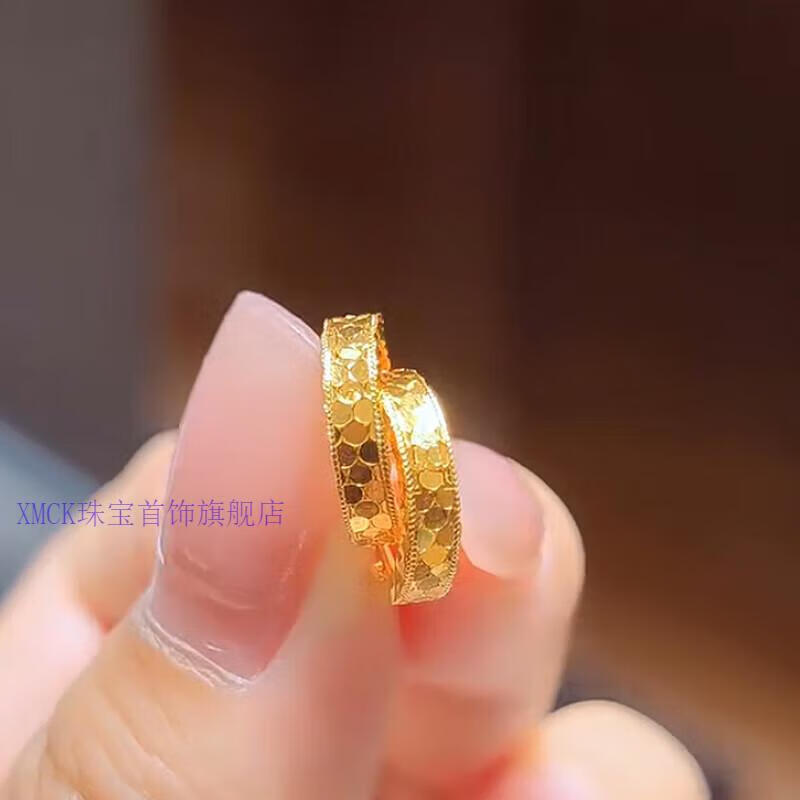 XMCK Old Phoenix 999 Gold Pure Gold Crushed Ice Earrings 2025 Temperament Circle Earrings Light Luxury Niche Ear Hole Earrings