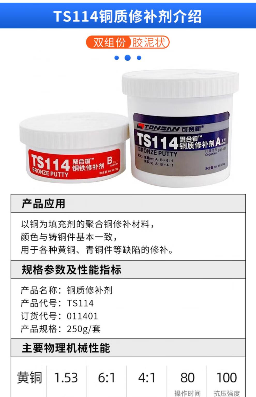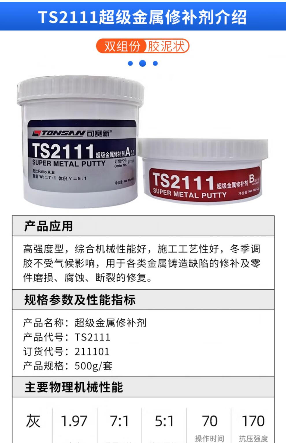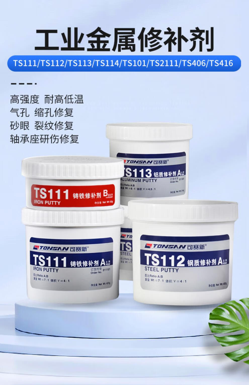 Kesaixin TS111 industrial cast iron 112 stainless steel 113 aluminum alloy copper pipe crack metal repair agent TS406 corrosion-resistant coating 500g/set